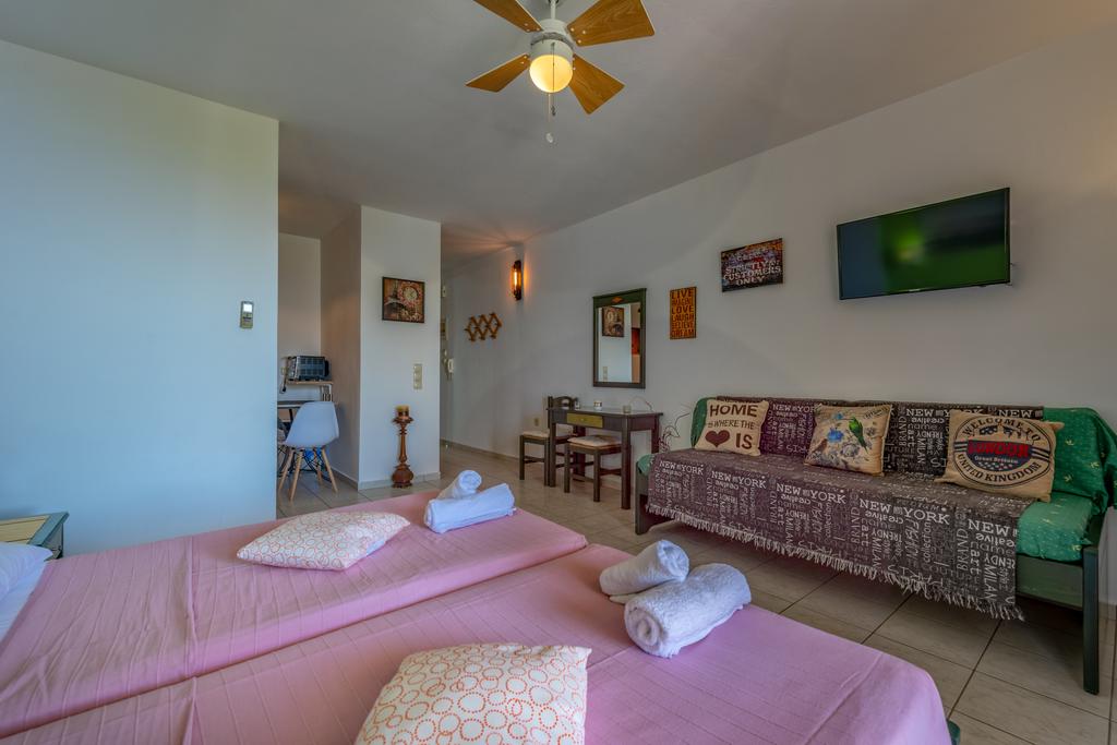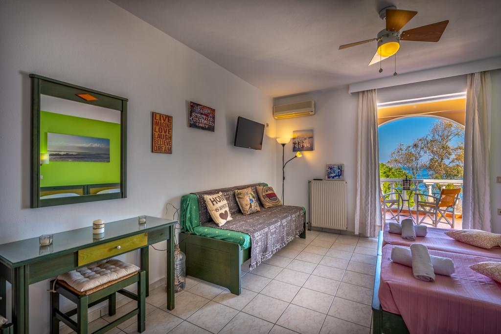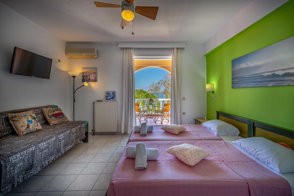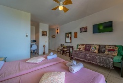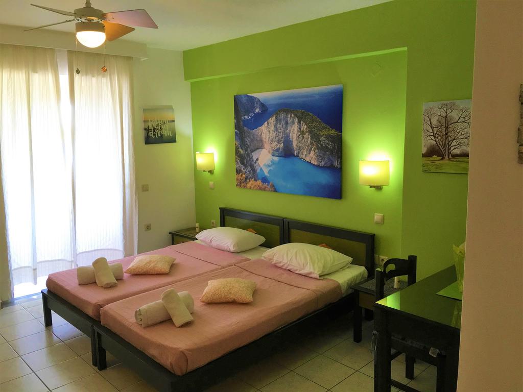 Lambros Beach Apartments are situated in the residential suburb of Zakynthos town, called locally Holy Trinity. They have a stunning view of the Ionian Sea, and you may grab your towel and go for a swim just across the street to the beach. This property in Zakynthos is a self-catering accommodation, fully equipped providing you the freedom of home and preparing your own meals. Other room amenities include airconditioning, washing machine and TV. Wifi access is covered throughout the area and parking is available for your private or rental car.