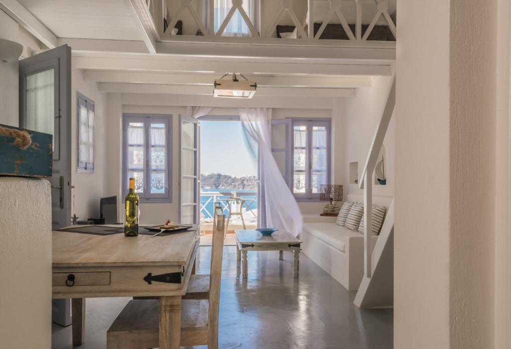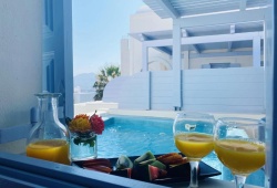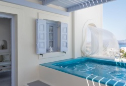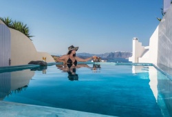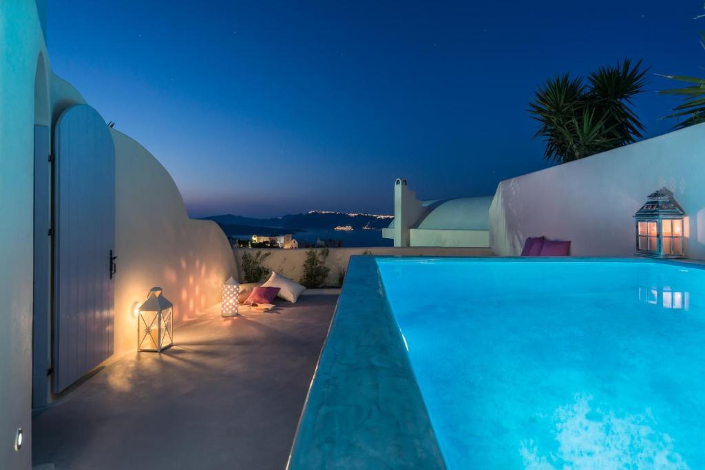 The Black Diamond Suites are located in Santorini on the slope of the historic Akrotiri. It is perfect for couples, honeymooners, and friends, as it can accommodate up to five people. You will appreciate the luxury and solitude for a relaxing stay. Every suite features a heated pool or hot jacuzzi, as well as a balcony for views. Also, they include built-in beds and couches and combine contemporary amenities with the local architecture. The vibrant bathroom has free amenities, a hair dryer, and slippers. The Black Diamond Suites is about 9 kilometers from Santorini Airport and 7 kilometers from Athinios Port. A twenty-five-minute drive will get you to the bustling Fira, which has a number of bars and stores.