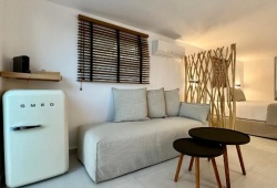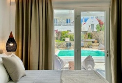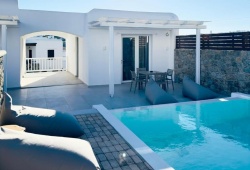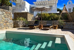 Sofos Suites Mykonos are luxury suites in the traditional village of Ano Mera. They are located in a quiet area within walking distance to the town center where all the restaurants, cafes, and supermarkets are situated. The famous beaches Kalo Livadi, Elia, and Lia are just 2 km away. The suites have a TV, Wi-Fi in all areas, a private bathroom with a shower and slippers, a fridge, a coffee machine, air conditioning, and a balcony with views. The property also has a swimming pool for your relaxing moments and free parking available. If you wish, breakfast can be provided.