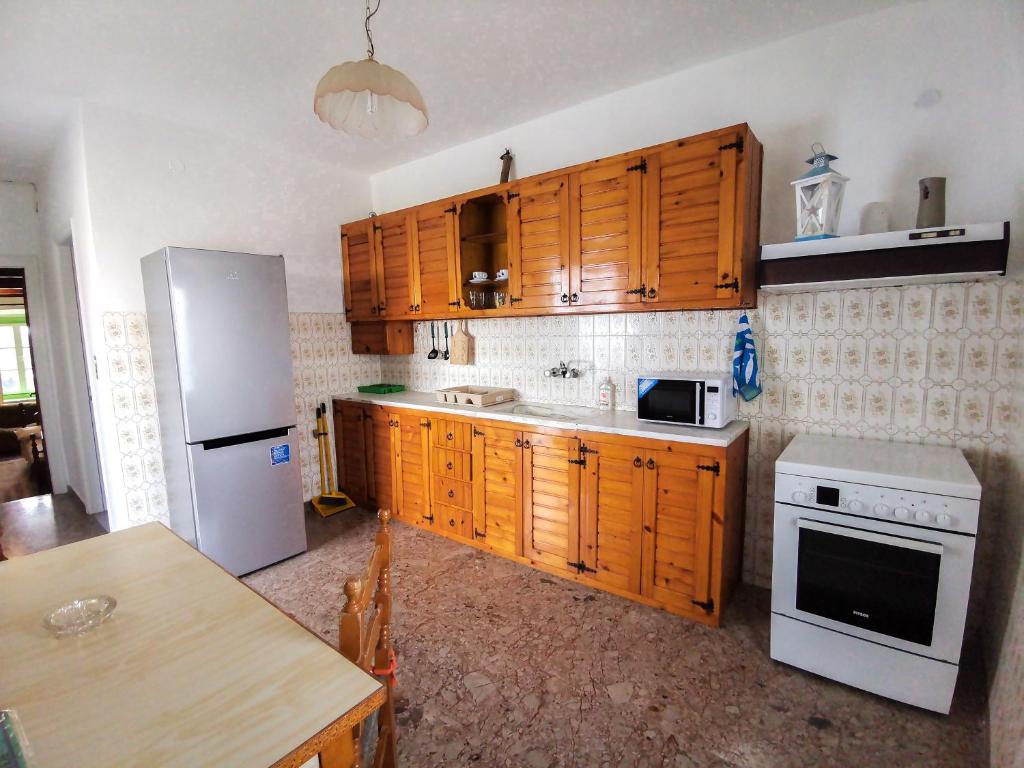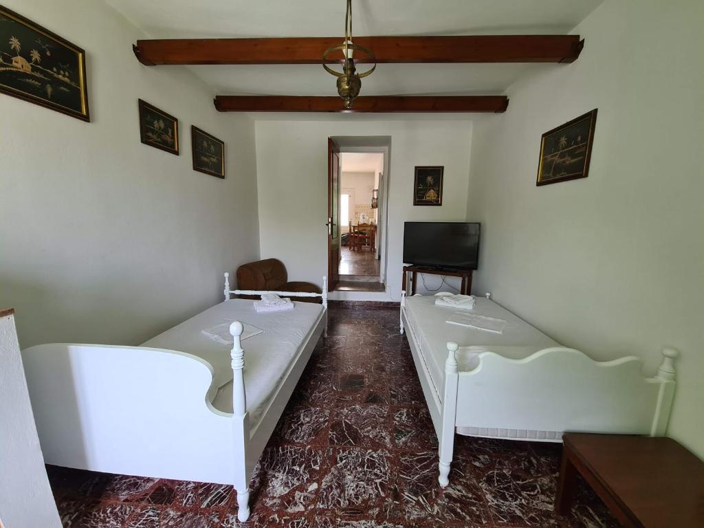 Vaggelis Traditional House sits in a great location, 10 mins from the Old Port of Spetses. Families, couples, and groups of friends seeking seclusion and leisure are sure to enjoy this holiday home. It has a dining area, a fully equipped kitchen, a terrace with views of the mountains, two bedrooms, one bathroom, bed linens, towels, and a flat-screen TV with streaming services. During colder days, guests can stay warm by the fireplace or enjoy the atmosphere of the outdoor dining area. Wifi is available throughout the area, and Agia Marina beach is 600m away. Agios Mamas Beach, the Port of Spetses, and the Bouboulina Museum are well-liked tourist destinations close to the Vaggelis Traditional House.