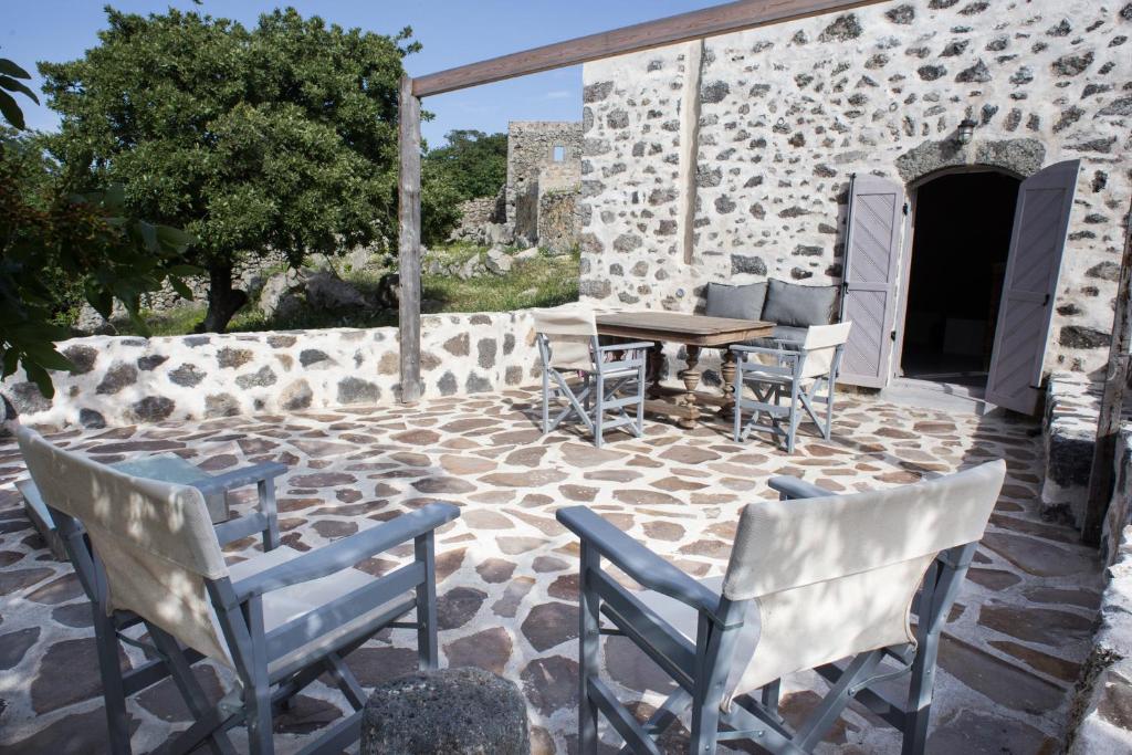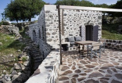 Kafka Stone House is a classic Nisyrian home with an excellent patio that is situated at the edge of Emborios with a view of the caldera. The property is encircled by woods and bushes on three sides and is only a short walk from the parking lot, village square, and tavernas. This traditional home features two bedrooms with double beds and evocative stone arches, all built from local volcanic stone. The living/dining space is open, the kitchen is fully furnished with a washing machine, and the bathroom has a shower. The property's historic design naturally keeps the interior cool, negating the need for air conditioning. If you plan a trip for privacy and relaxation to Nysiros of the Dodecanese Islands, Kafka Stone House is the ideal place to be.