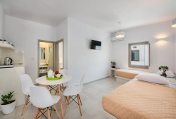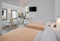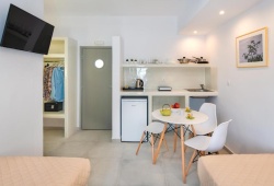 A delightful complex of brand-new accommodations ideal for a comfortable vacation stay, Olive Tree Suites is tucked away in a key yet tranquil area of Fira, the lively capital of Santorini Island. Olive Tree Suites, which are tastefully furnished in the traditional Cycladic style and equipped with contemporary conveniences, can serve as the beginning of all your travels and the place where life-changing Santorinian experiences start. Facilities include a private bathroom, wifi connection, terrace in some rooms, fridge, airconditioning, and TV.