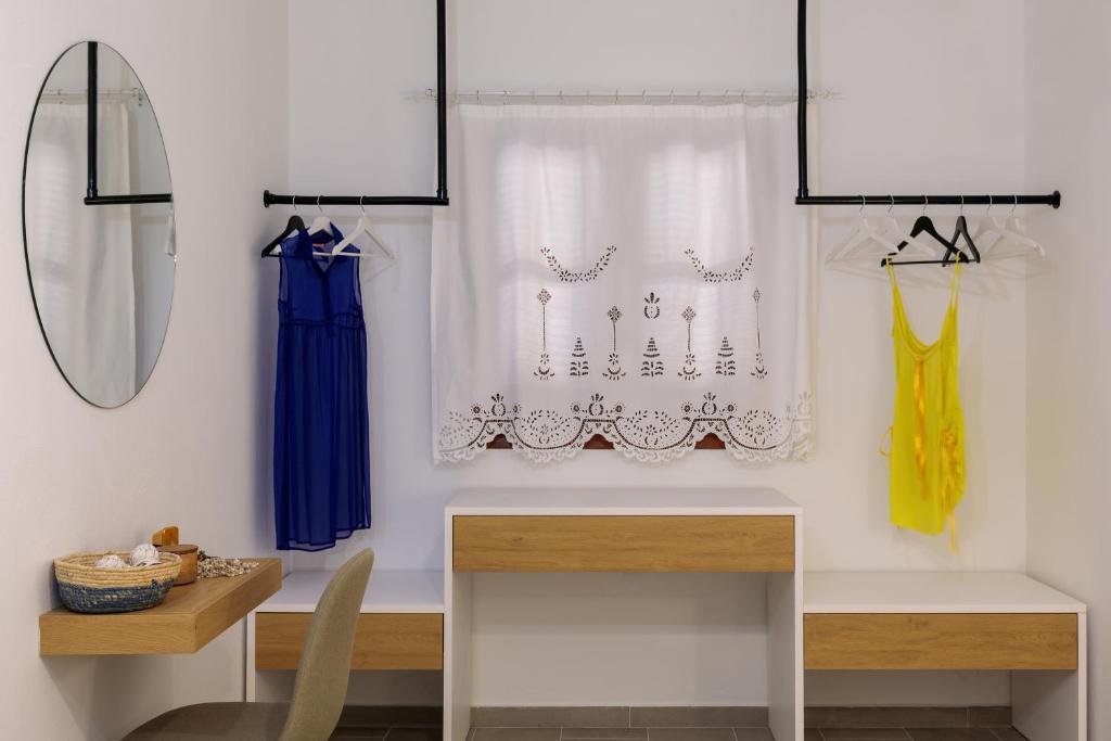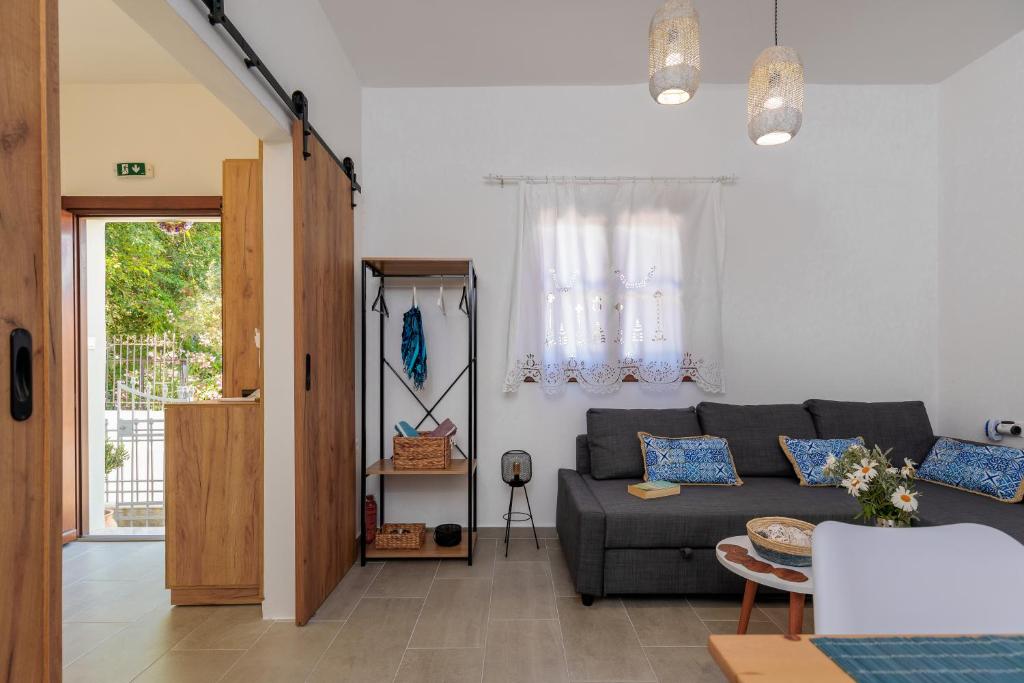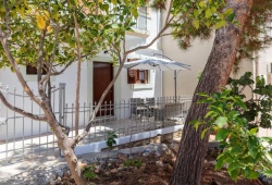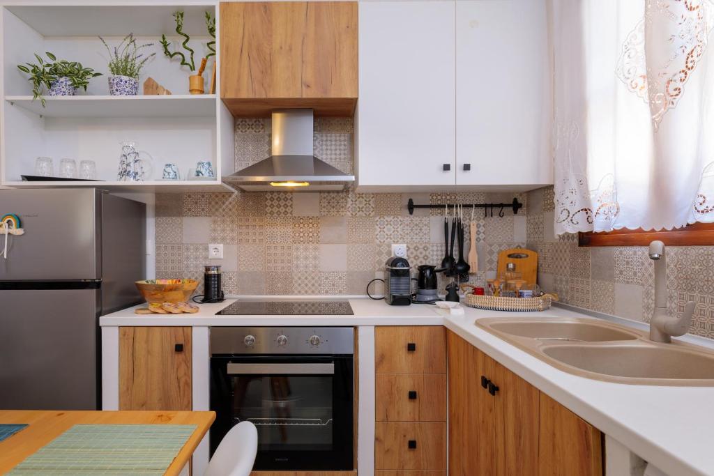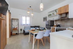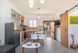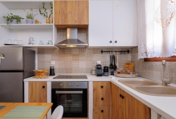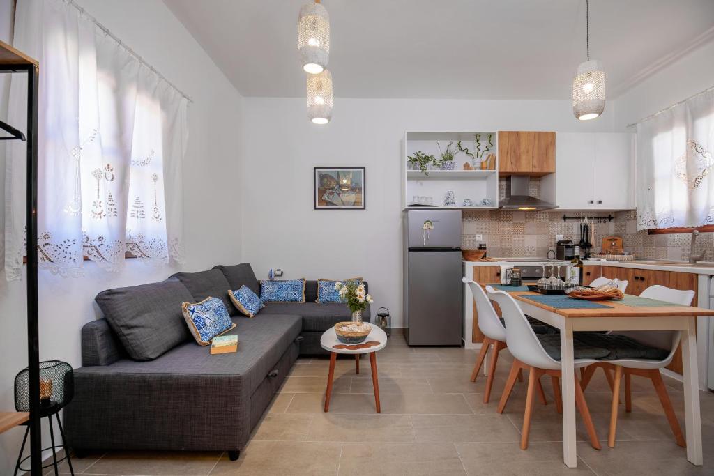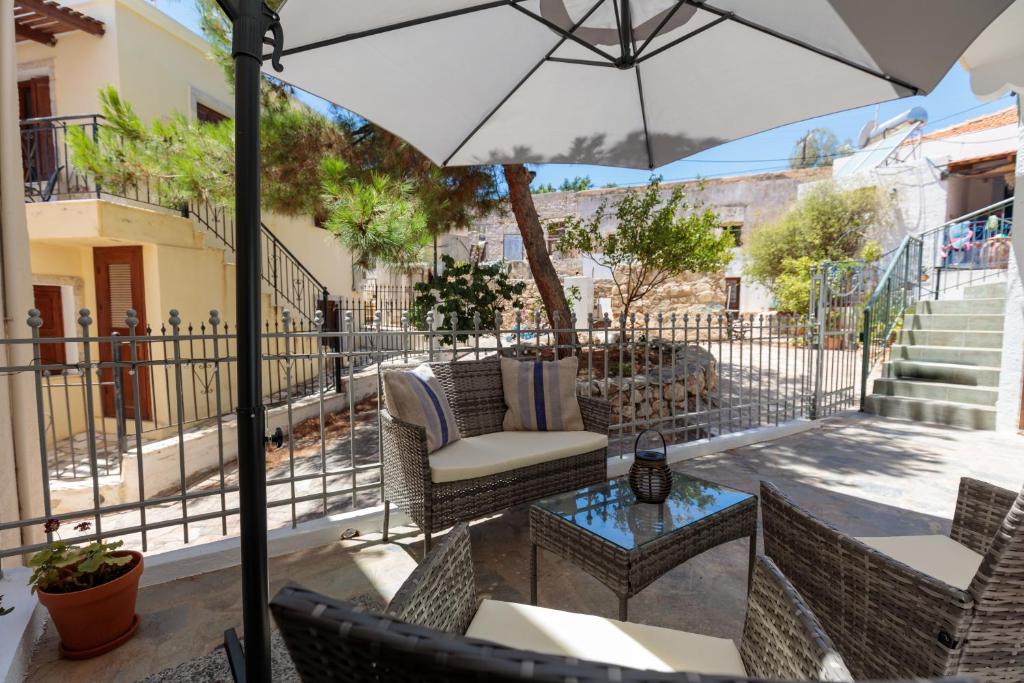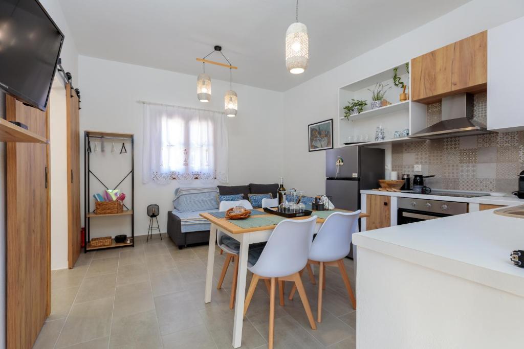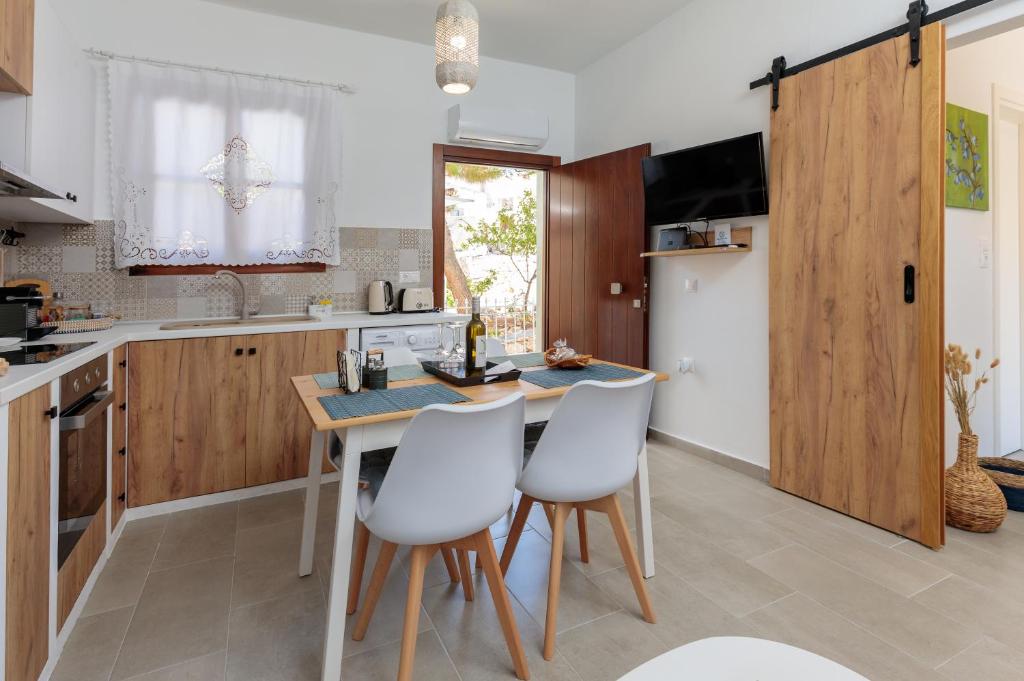 On the beautiful island of Halki, the Bluebell house is only 0.2 km from the port (3 minutes' walk) and 0.5 km (6 minutes' walk) from Pondamos Beach. The house has a bathroom, an open-plan kitchen, a dining area, a living room, and one bedroom. Guests can unwind or eat outside in the front and backyards, which are furnished with outdoor furniture. The guest bathroom has towels, a hair dryer, and a walk-in shower. The well-equipped kitchen (complete with an electric cooker, oven, four cooking zones, refrigerator, kettle, toaster, and coffee maker with milk frother), dining room, and living area make up the open-plan space. The guesthouse has air conditioners, smart flat-screen TVs, and complimentary Wi-Fi. The Bluebell House is the ideal option if you're looking for a quiet spot to stay on the isolated island of Halki.