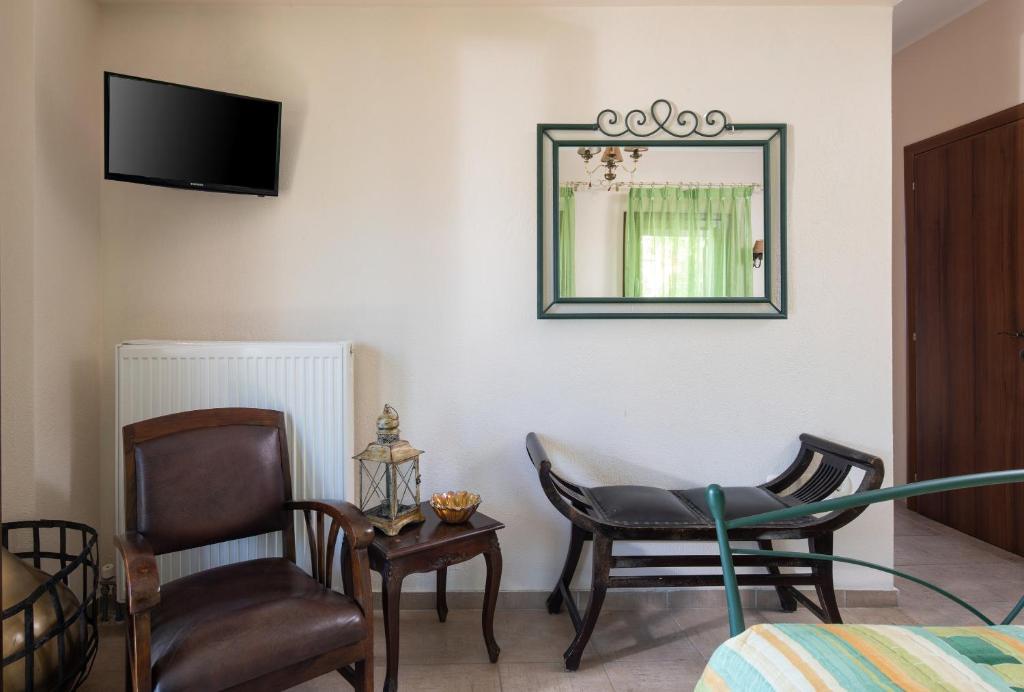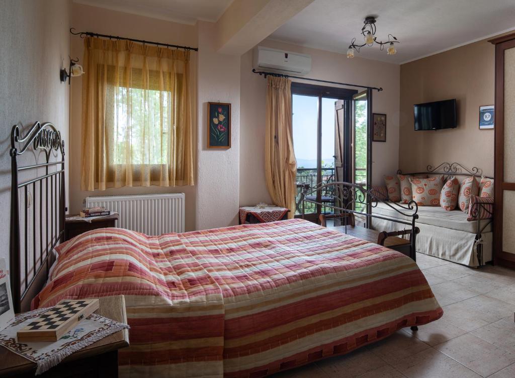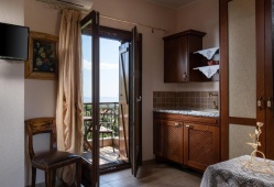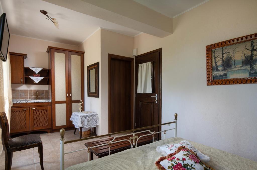 Only 5 kilometers from the vibrant town of Neos Marmaras, the Chorostasi Guest House is situated in the hamlet of Parthenonas of Sithonia, Halkidiki, at an elevation of about 350 meters, with a view of the Isle of Kelyfos and the Toroneos Gulf. Nearby towns like Neos Marmaras, Nikiti, and Sarti are well-known and vibrant, with a wide range of eateries, tavernas, pubs, cafes, and other services. Chorostasi Guest House features air conditioning, Wi-Fi, a fully equipped kitchenette, and a flat-screen TV. Breakfast is available every morning to start the day. The nearby settlements of Neos Marmaras, Nikiti, and Sarti are well-known, vibrant Halkidiki towns with a wide range of restaurants, tavernas, bars, cafes, and other services. Last but not least, Sithonia hosts a variety of concerts and festivals, particularly in the summer, and is also close to well-known Byzantine and archaeological sites, including museums, the Petralona Caves, and Mount Athos, which can provide visitors with a pleasant experience and insight into Greek history.