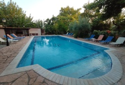 In addition to providing a cozy family atmosphere, Makis House in Halkidiki is endowed with the peace and quiet of the surrounding countryside and the close vicinity to the "Metamorphosis" beach, which is just 250 meters away. This guesthouse is perfect for single people, couples, parties, and families with kids who want to spend their vacation in a fun, laid-back setting with amenities for both them and the kids. The house has air conditioning, a balcony, a private bathroom with a shower, a coffee maker, a stovetop, kitchenware, a safety deposit box, a flat-screen TV, and a wardrobe. Every room at the guest house has towels and bed linens. Enjoy the swimming pool for relaxing moments. There is Wi-Fi in all areas and car parking available. Thessaloniki Airport is 82 km from Makis House.