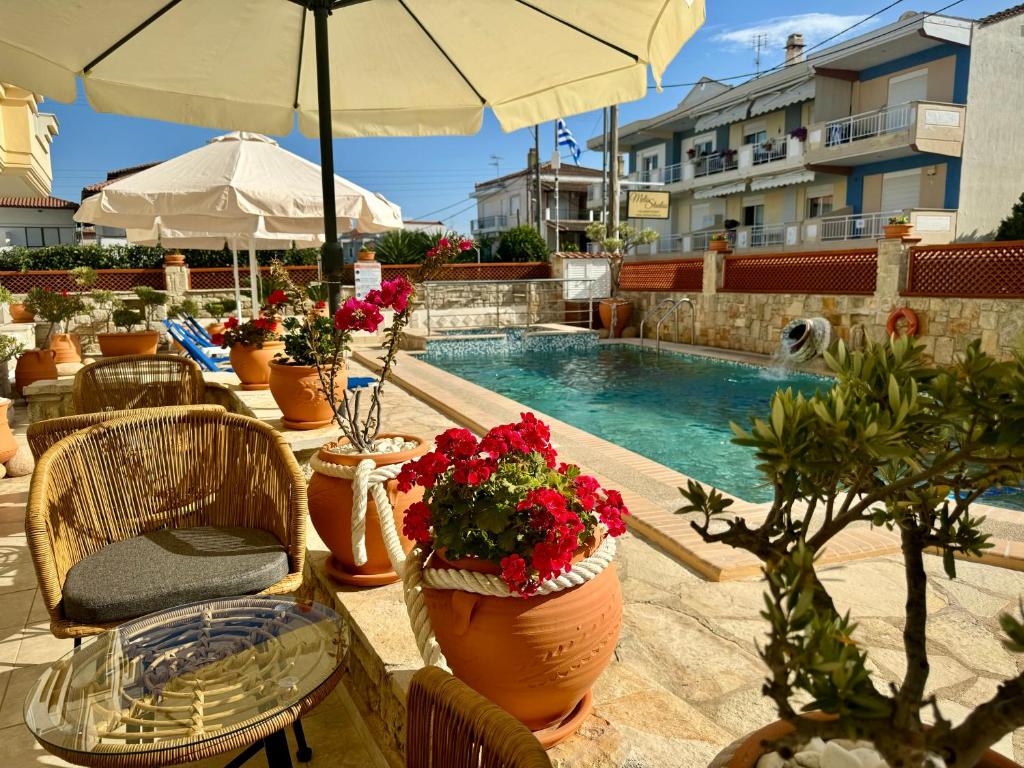 Melis Studios is the ideal complex where you can enjoy your vacation in peace and an enjoyable environment. It is situated in a very quiet area, yet only 300 meters from the beach and 150 meters from the city of Kallithea in Halkidiki. Nearby, you will find You may walk to a huge supermarket, cafes, traditional taverns, and other stores in less than five minutes.