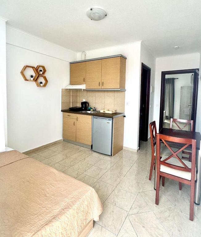 Kallithea, on the east coast of the Kassandra peninsula—also referred to as the "first leg" of Halkidiki—is where Melis Studios are situated. With all the conveniences of staying in the center of Halkidiki, the Meli team makes sure your stay is excellent and makes you feel at home. There are plenty of options for accommodation, including contemporary apartments and studios, so you may choose what suits your needs. The units provide air conditioning, a desk, a refrigerator, a kitchenette, a kettle, a shower, a hair dryer, and a flat-screen TV with satellite channels. In addition to free WiFi and a private bathroom with complimentary toiletries, the aparthotel offers some rooms with a terrace. Relax at the swimming pool to cool off and enjoy a refreshing beverage at the bar.