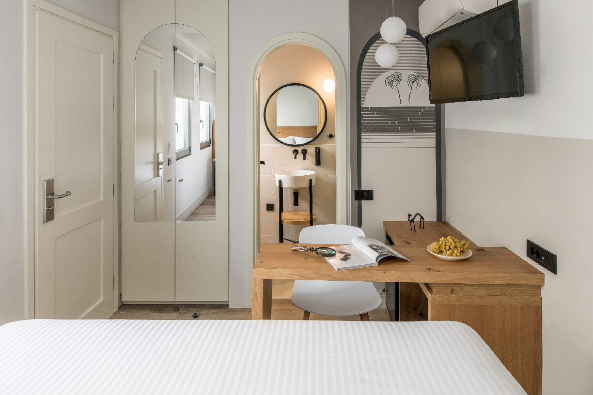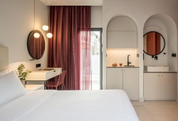 In particular, the city center of Heraklion, the island's capital, is where Domus Ariadne is situated. It provides an emotional elegance and is situated just beside the Archeological Museum of Heraklion. There are six magnificent rooms that accommodate 2-4 guests and they come with view to the lovely patio also you have access to a table on the balcony where you can enjoy your coffee in the peaceful environment. It offers a desk office, smart TV, a queen size bed, a Kitchenette, mini-Bar, kettle with coffee and tea facilities, a safe and a hairdryer. Although Domus Ariadne in Heraklion may seem like your own private haven, you'll be pleased to learn that it's only a short distance from the fancy stores, dining options, and exciting nightlife of the island of Crete.