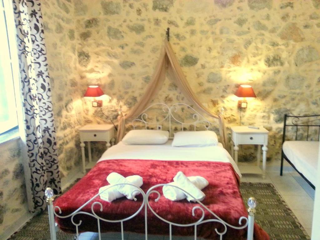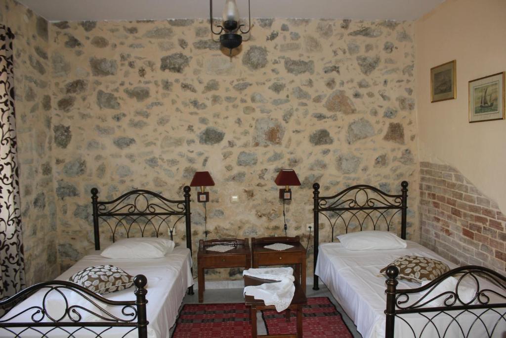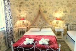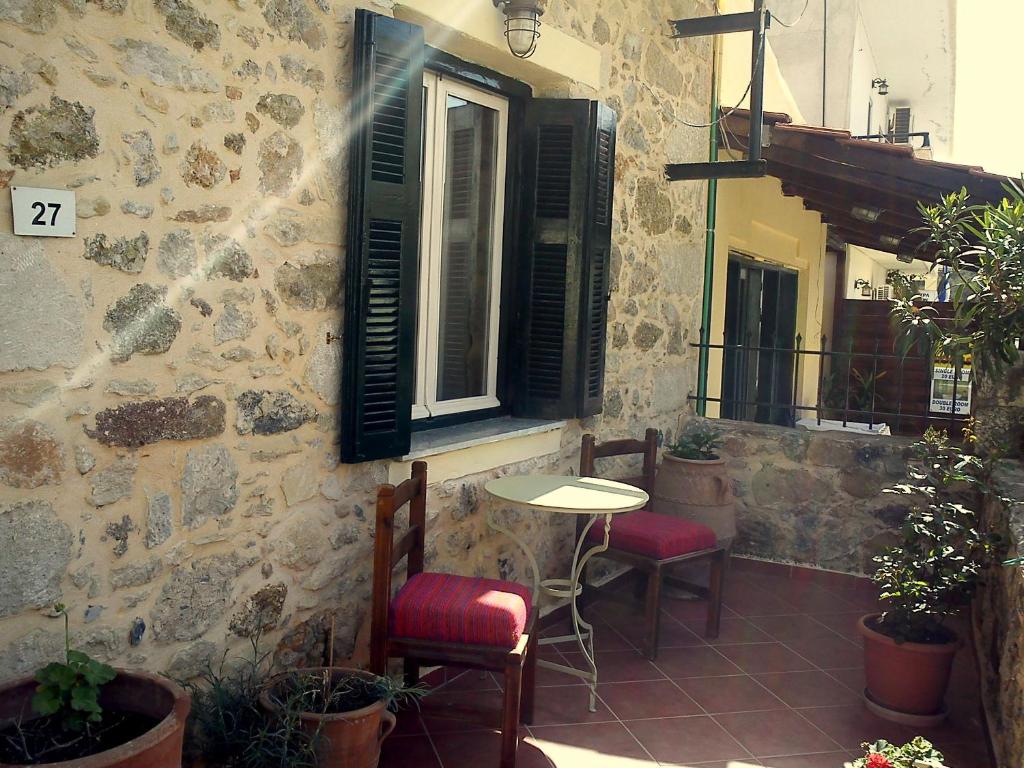 Situated at the entrance to the picturesque village of Zaros in Crete, the traditional Hariklia Rooms are a great option for visitors of all ages and tastes because they blend in perfectly with the village's natural beauty. The beds are built of wood and iron, the rooms are nicely adorned with traditional stone cladding on the walls, and the rooms contain handmade items. Air conditioning, a refrigerator, and private bathrooms with a hair dryer are among the amenities. The traditional rental rooms at Hariklia offer a spacious courtyard with a mountain view and a lovely garden with flowers, fig trees, lemon trees, and orange trees. You may unwind and savor your breakfast and coffee there. The Heraklion airport is 45 km away from the property. The nearest beach is Kokkinos Pirgos located 15 km away.