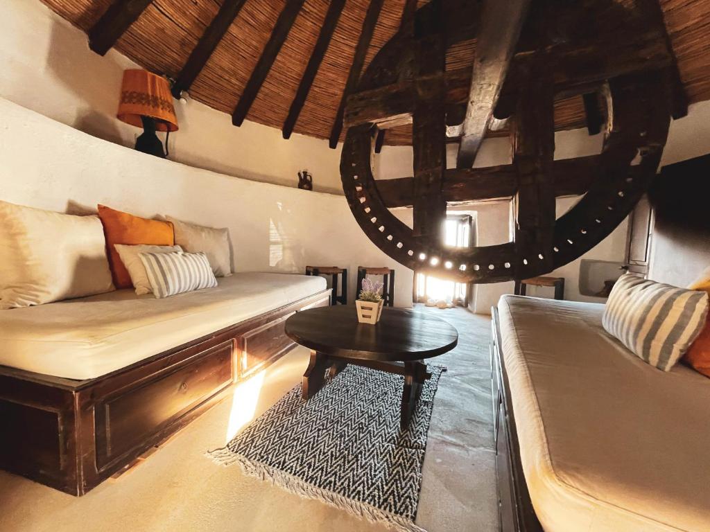 One of the three windmills in the historic center of Serifos that have grown to be the island's most recognizable sight is the Windmill Serifos, which is situated near Chora Serifos. The iconic early 20th-century windmill was exquisitely converted into a dream house. The property has a large living area, one bedroom, and a bathroom. Air conditioning, a patio, and a fully functional kitchen with an electric kettle and coffee maker are among the amenities. Views of the sea and mountains improve the stay, and an outdoor seating area offers a nice place to relax. The Windmill Serifos is ideally located to provide easy access to the local center, where restaurants, shops, and bars are only a short distance away.