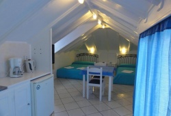 If you are looking for private accommodation in the heart of Hydra, the Botsis Guest House is the ideal option. It is located only 70 meters away from the main port of Hydra Island in a quiet location and has a private bathroom, air conditioning, television, refrigerator, and balcony with a view. The guest house's attic has been converted into a stunning apartment that can host up to four people. There is air conditioning, a refrigerator, an LCD TV, two double beds, and a bathtub in the bathroom. The studio's balcony, which offers a breathtaking view of the town and sea, is its best feature. A fully equipped communal kitchen is available for all of the guests to use on the second floor.