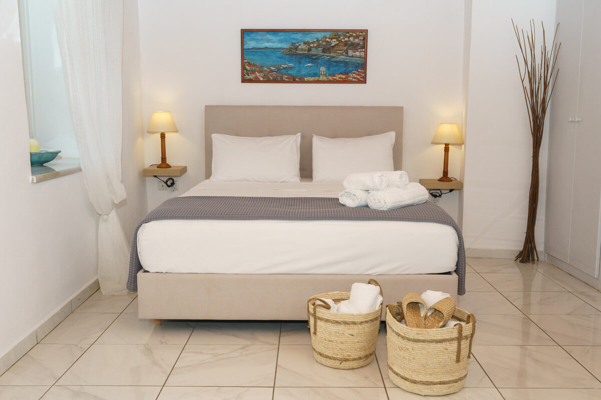 Families or groups of friends that like to travel together but still maintain some independence can stay at this residence. It has a fully furnished kitchen, two bathrooms with showers, two bedrooms with queen-size mattresses, and a living area with a sofa bed. You may take in the sea view from the terrace on the house's rooftop. When you want to eat at home, you are invited to use the stone BBQ and harvest the fruit that is in season from the trees. The Hydra Dream House is around 50 meters from the Maragos Kamini supermarket.
