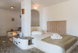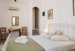 For a wonderful Sifnos Island trip, the accommodations at Agnanti Traditional House, which is situated in Kastro village, are quite delightful. Comfort, traditional design, hotel amenities, and a breathtaking view are all provided by this guesthouse. The accommodations themselves exhibit the traditional architectural style, with their standard interior décor, classic yet elegant features, tiled flooring, and double beds, some of which are made of stone. There is also a spacious bathroom with a cabin shower, as well as a private veranda. Along with other amenities, the conventional style offers free Wi-Fi, a telephone line, a refrigerator, a TV, a hair dryer, and air conditioning. The convenience of parking within the business's boundaries and the location's easy accessibility both contribute to the comfort.