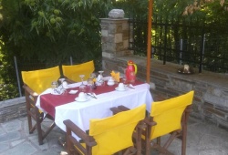The Ktima Samandli Guesthouse in Kissos, Pelion, is an ideal accommodation for hosting social events (wedding receptions, christenings) and cultural events (music, theater, literature, visual arts, folklore, seminars, etc.) thanks to its specially designed outdoor spaces. It consists of a ground floor and an upper floor and is made up of five autonomous rooms with private bathrooms, with a total capacity of eleven beds (four double rooms and one triple room). On the floor, in addition to the two double rooms, there is the shared living area (lounge) as well as the shared kitchen of the guesthouse. Breakfast is provided to start the day. Visitors to the Ktima Samanli can take advantage of the garden or explore the hiking trails nearby. The Folklore Museum Milies is 33 kilometers from the guesthouse, and the Museum of Folk Art and History of Pelion is 28 km away.