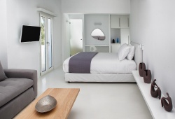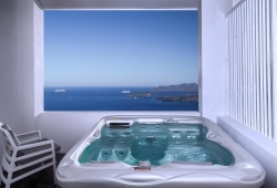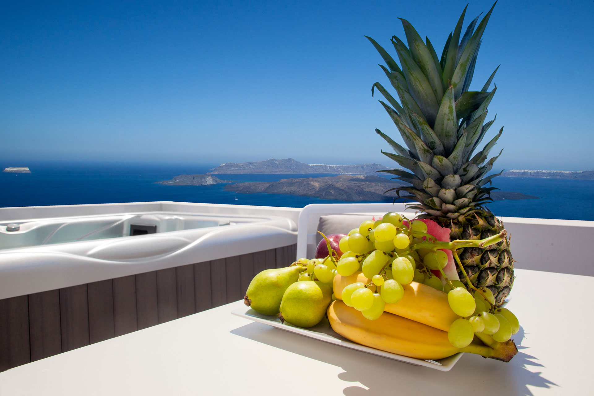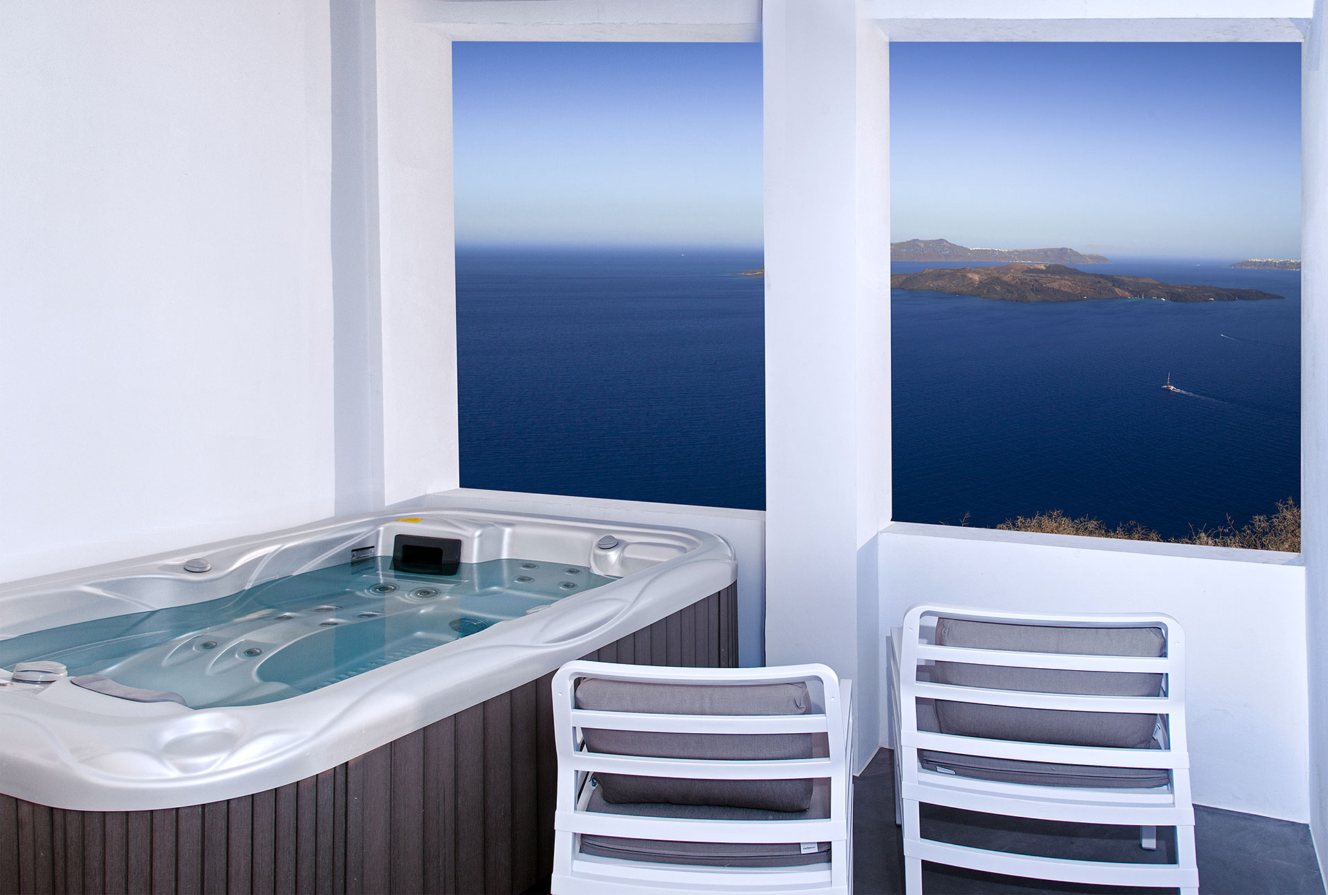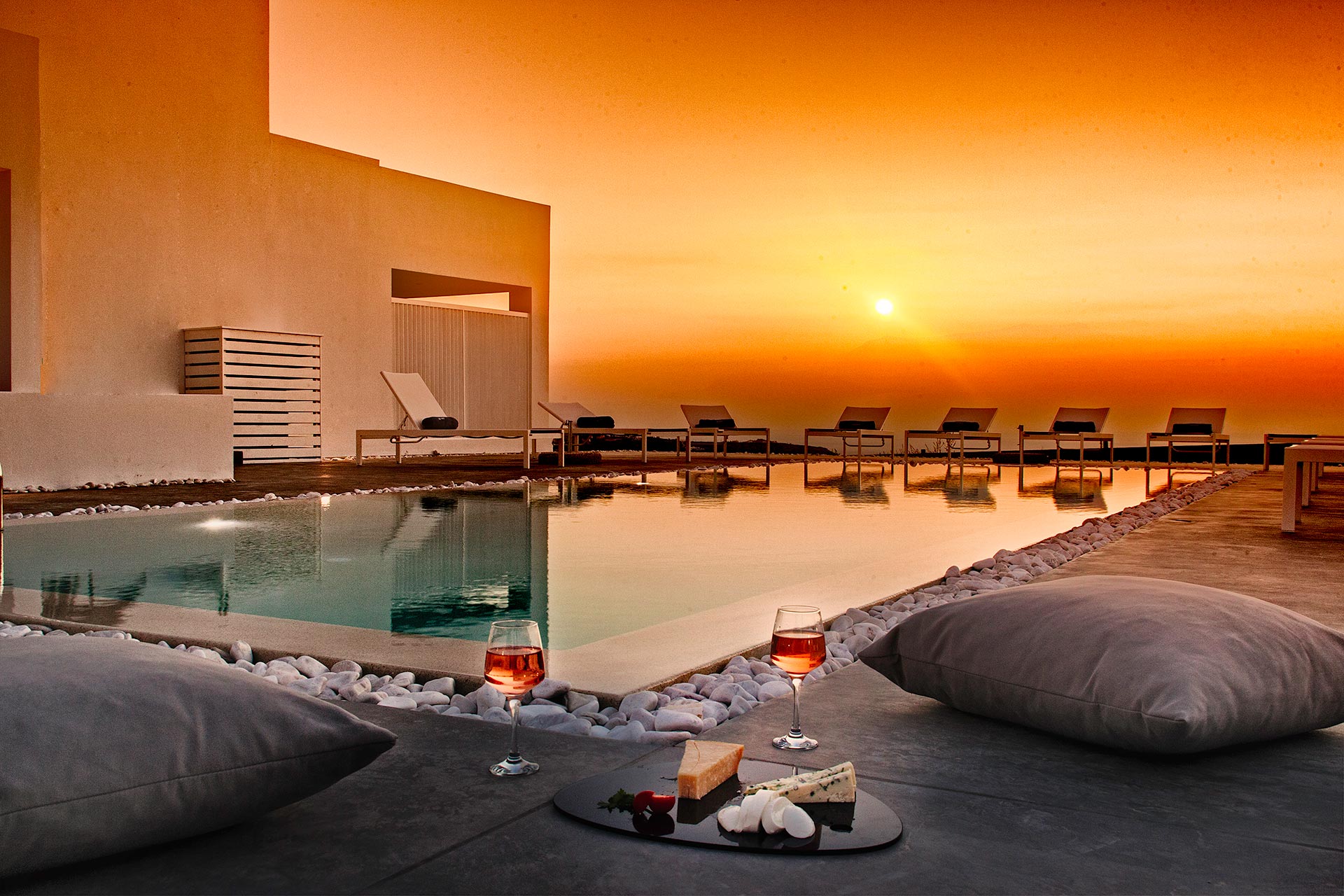 One of the most charming settlements on the island of Santorini is Megalochori, where the May Seven Luxury Suites are situated. It has a main pool outside and six lavish suites with views of the Caldera. Every suite has its own Jacuzzi. With its distinctive and elegant ambiance, May Seven Suites is within a short distance from Megalochori's center. Enjoy all of the resort's amenities, unwind by the pool, check out a book from the library, have a spa treatment, or just dream while the sun sets. Beautiful shops, restaurants, and peaceful paths can be found in Megalochori. Experience the rich wine culture of Santorini Island in the Megalochori area, which is primarily a vineyard region. While staying at May Seven Suites, take in wine tastings at a couple of local wineries.