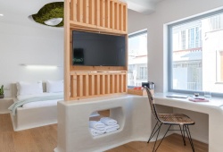 Situated on a lovely pedestrian road in Monastiraki, in the center of Athens, the Lofus Bio-Suites hotel is notable for both its architecture and philosophy. The expansive suites with earthy and green soft surfaces inside the five-story building link guests to nature while reflecting the rich legacy of Dionysian Ancient Greece. Air-conditioned apartments with a desk, coffee maker, refrigerator, safety deposit box, flat-screen TV, and private bathroom with shower will be available to visitors at the aparthotel. While some apartments have a fully furnished kitchenette with a burner, toaster, and cookware, each unit comes with a kettle. Every room at the aparthotel has towels and bed linens. The Temple of Hephaestus, Omonia Metro Station, and Monastiraki Metro Station are well-liked attractions close to Lofus Bio-Suites. The facility has a chargeable airport shuttle service, and Athens Airport is 30 kilometers away.