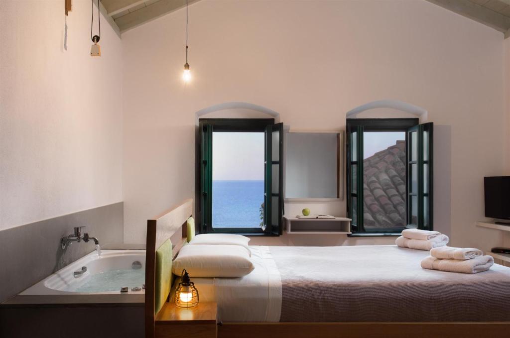 Only 60 meters from the main gate, in the center of the old Monemvasia Castle, is the Kalnterimi Guesthouse. This guesthouse provides an exceptional and unforgettable experience with its breathtaking sea view and perfect combination of modern and medieval castle architecture. The Family Suite and the Junior Suite, the two separate homes that make up Kalnterimi, both provide stunning views of the sea. The apartments' well-planned architecture blends modern features with the allure of the castle's classic style. They have a private bathroom, air conditioning, a flat-screen TV, a kettle, towels, and bed linens. The Kalnterimi Guesthouse is conveniently close to a number of facilities and is situated on the main street of Monemvasia, a castle town. Charming cafés, vibrant bars, delectable restaurants, and nearby shops are all within walking distance. Take in all that the castle town has to offer and lose yourself in its lively atmosphere.