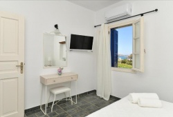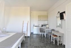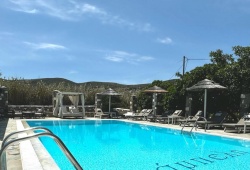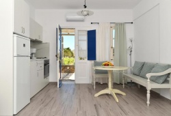 It has ten luxurious apartments, which may accommodate from 2 to 4 persons. The beautifully decorated and spacious units are a guarantee for a pleasant stay. They provide you with a great view of the bay of Naoussa and have large verandas with bamboo furnishings. The apartments feature air conditioning, satellite TV, telephones, and fully furnished kitchens (refrigerator, toaster, coffee maker, kettle, oven, dishes, glasses, and silverware) and bathrooms (bathtub, hair dryer, and amenities). Dive in the swimming pool and soak up the sun or enjoy a refreshing beverage at the coffee shop.