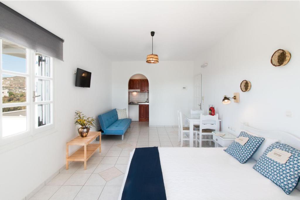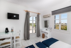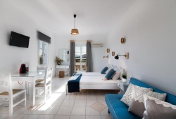 Ktima Bianco offers a variety of rooms that can sleep two to three persons or three adults and one child. Fully furnished with all the contemporary conveniences, the property and the rooms are decorated in the island manner using local materials and traditional items from Naxos Island. These Cycladic-style accommodations have balconies or terraces with views of the sea and the castle and a fully equipped kitchen to prepare your own meals. The staff at Ktima Bianco prepares breakfast every day, which is served on the sunny terrace of the accommodation. A large supermarket, bakery, cafes, playground, outdoor movie theater, restaurants, tavernas, bars, a bus stop with frequent routes to and from the port, and far-off beaches are all within 200 meters of Ktima Bianco.