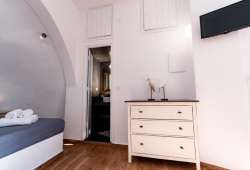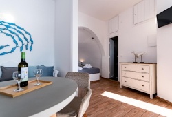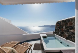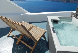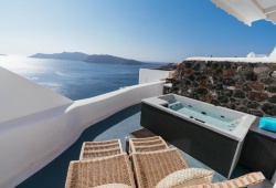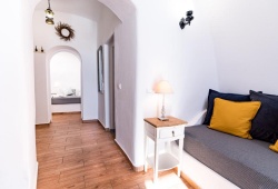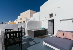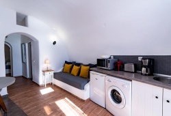 The stunning village of Oia, on the stunning Greek island of Santorini, is home to the Aspa Caves. They are made up of two caves (a studio and an apartment) that have been constructed and refurbished but have maintained their traditional shape and design while changing and evolving for visitors. The Aspa Cave consists of a private bathroom with shower, kitchenette, living room with dining area, and private balcony with jacuzzi and furniture. Furthermore, the balcony has breathtaking views over Thirasia Island, Oia Village, the volcano, and the Caldera. A bus station to Fira is located 50m from the beginning of the village, near Aspa Caves. There are also three restaurants, a cafe, two mini-markets, and other stores in the area. Santorini Airport is 15 km from the property, while the Archaeological Museum of Thera is 10 km distant.