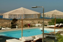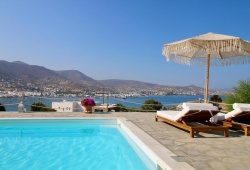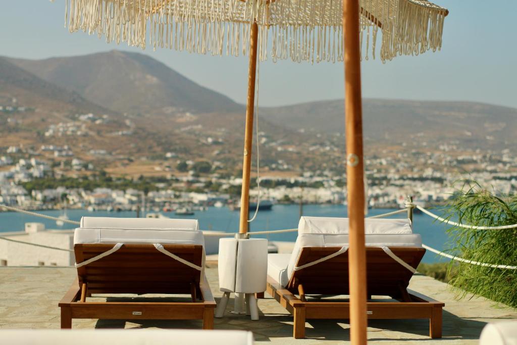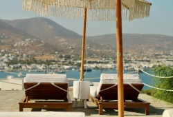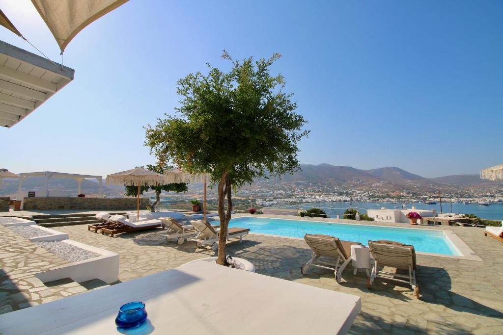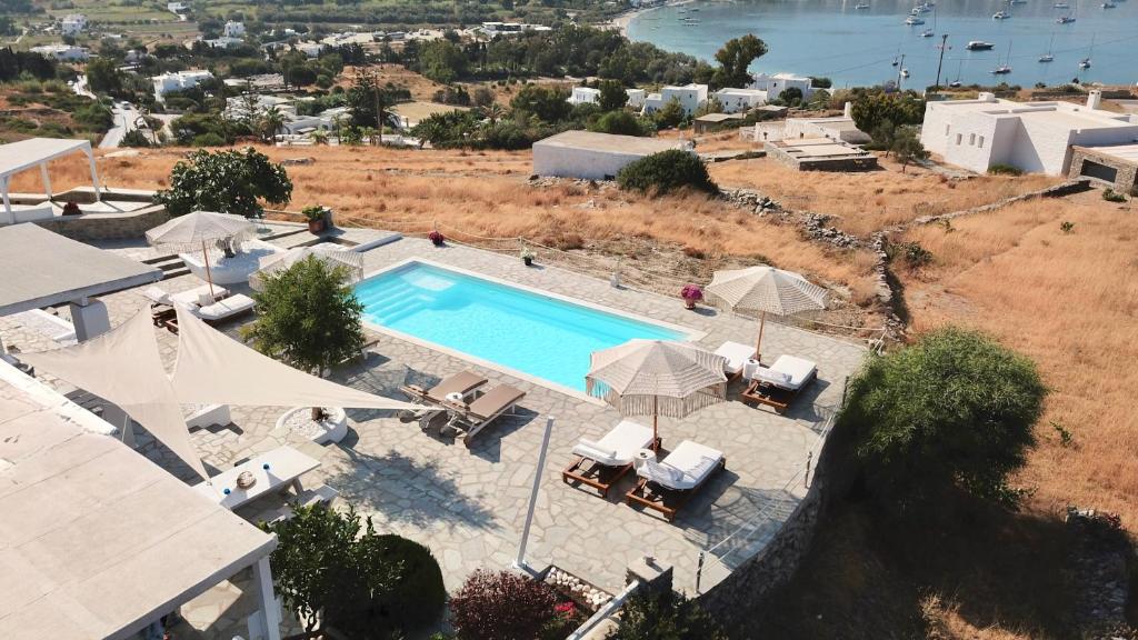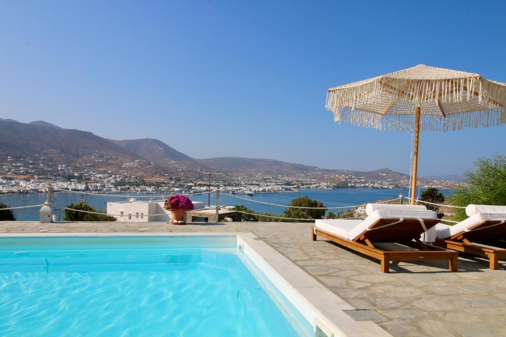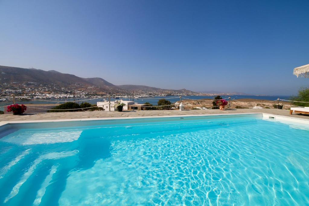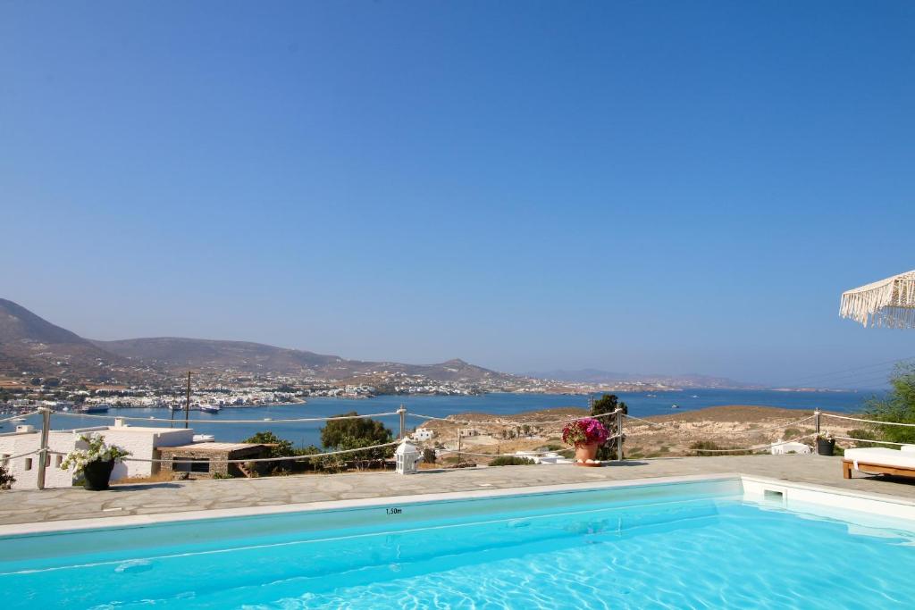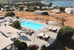 The Heliolithos Blue Bay apartments and studios are situated on a hill with a view of the Aegean Sea, offering one of Paros' most breathtaking panoramic views. An ideal peaceful location for unwinding and connecting with nature, this accommodation with the most breathtaking view of the Gulf of Parikias Port will amaze you. Every one of the rooms has its own balcony overlooking the sea and the stunning city of Parikia, and they are all decorated in the traditional Cycladic way. They include air conditioning, a television, a view of the sea, an internet connection, a refrigerator, and in certain studios, culinary appliances. Guests can enjoy the pool with a view and garden at the guest house. The distance between Heliolithos Blue Bay and Parikia's center is just 1.5 kilometers. Some of the most stunning beaches in Paros are quite close by, including Krios and Marchello Beach. Livadia Beach is just ten minutes' walk from the property along the classic road that leads to the soft, sandy shore.