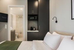 WYZ Piraeus is a brand-new guesthouse in the city well situated between the metro station and Piraeus port. There are many classic restaurants and shops within walking distance. The apartment is on the sixth story and has two bedrooms, a fully functional kitchen, a walk-in shower, a Nespresso machine, a smart TV, a small fridge, a kettle, and a large patio with a partial view of the sea. Also offers a fitness center and a shared lounge. For the convenience of guests, the aparthotel has a private entrance. WYZ guesthouse in Piraeus provides airport transfers, so take the opportunity to plan and book your trip to Greece.