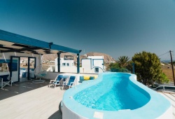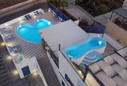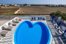 The Honeymoon Suites in Perivolos, Santorini, is a haven of stylish comfort for those looking for a genuinely one-of-a-kind, dreamy vacation or honeymoon on an island known for its irresistible romantic charm. With traditional Greek cooking and traditional Greek hospitality, this complex is situated in Perivolos, Perissa, about 100 meters from the black sand beach. Swim in the heart-shaped pool and enjoy home-cooked Greek specialties made with the freshest local ingredients at the snack bar in the evening. The honeymoon suite is conveniently located near the public transportation bus that will take you straight to Oia, where you can see the most breathtaking sunsets, or Fira, the island's capital and main town. Make your reservations with your loved ones at the Honeymoon Suites in Santorini, which is more unique than you could have ever imagined and is located in the center of the Aegean Sea among the stunning Cyclades Islands.