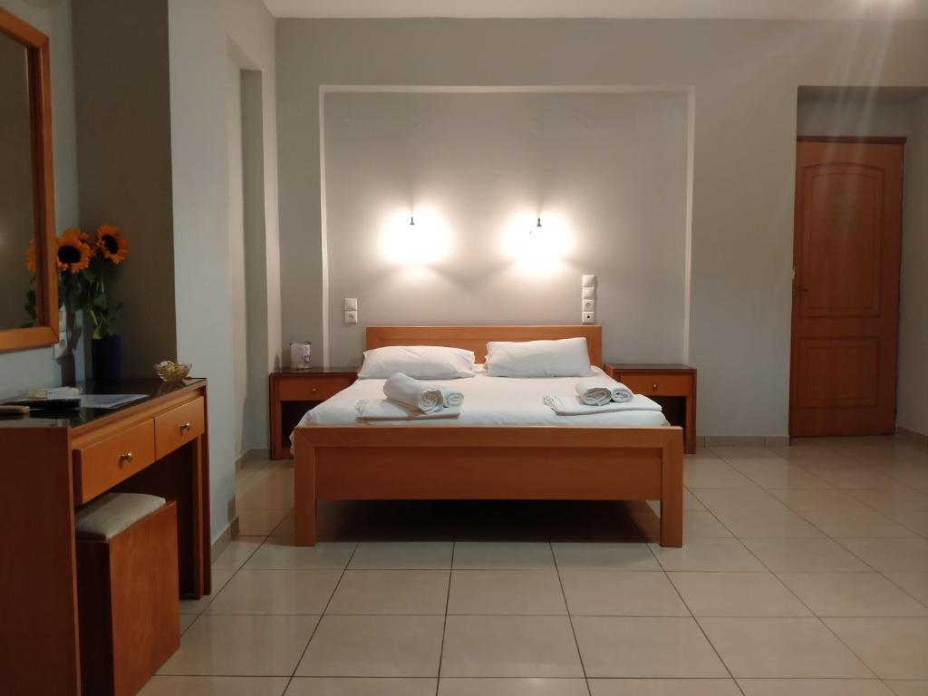 Experience the beach at the Leonidas Rooms in Chania, Crete's Platanias. To fully enjoy the summer, book a room close to the beach. The accommodation has a large layout with pleasant sitting areas, a private bathroom, and a fully furnished kitchenette. There is parking for your car and free WiFi available all across the property. Platanias Square is less than a kilometer from the property, and Platanias Beach is only a few feet away. The distance to Chania International Airport is 23 kilometers. Your ideal location for a restful beach vacation in Crete is Leonidas Rooms.