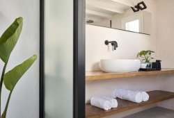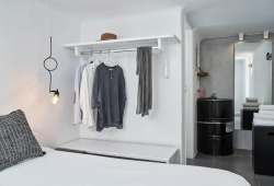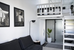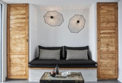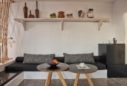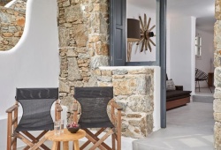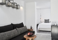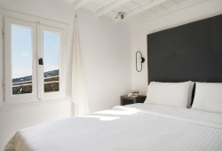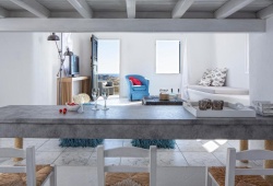 Experience luxury and comfort with new houses for a memorable stay at Almyra Guesthouses in Mykonos. Located on a hillside in the area of Platis Gyalos, they are luxurious accommodations for all kinds of tourists, encircled by Mykonos' magnificent ambience. The guesthouse has a flat-screen TV, an electric kettle, and a mini fridge. Additionally, every apartment has a living space and a bathroom with a shower or bathtub. Also features a kitchenette, air conditioning, and views of the Aegean Sea. Visitors can find water sports facilities and taverns selling local cuisine on the beach. Wifi is available in all areas, and there is free parking for your own or rental car. Enjoy the swimming pool for your relaxing moments and try local beverages with snacks at the bar. There is a bus stop 150 meters from the Almyra Guesthouses that takes you 5 kilometers to Mykonos Town. The distance to Mykonos Airport is 3 km.