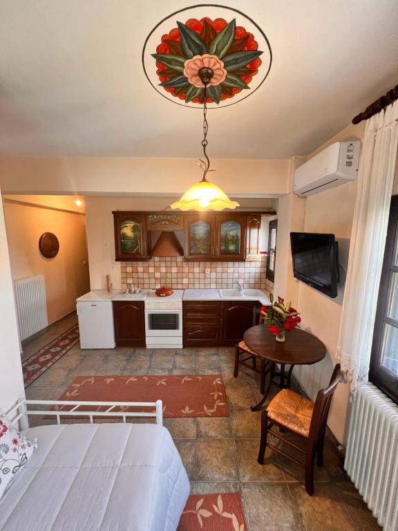 The Filokalia guesthouse is located in Portaria on Pelion, the Centaur mountain. With its distinctive interior design, this traditional guesthouse offers a cozy haven where you may explore Pelion's fascinating cultural traditions and the innumerable natural wonders. The Filokalia residence offers a total of 6 rooms—suites—and a wide range of facilities, services, and activities on its premises. They come with central heating (radiators), air conditioning, a private bathroom, a hairdryer, bathroom toiletries, a refrigerator, hot water available 24/7, a television, and free internet. The balconies offer stunning mountain views. Enjoy breakfast every morning to start the day made by fresh local products. Guesthouse Filokalia is 200 meters from Portaria square, 12 km from the port of Volos, 14 km from the ski center of Pelion, and 34 km from the airport of Anchialos.