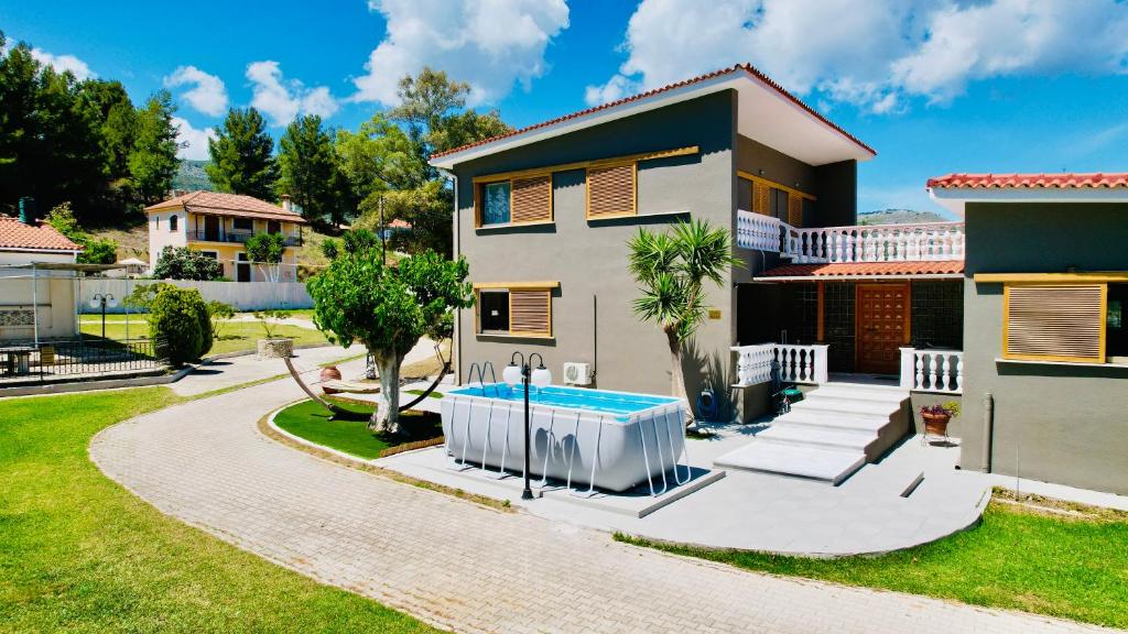 Gazonia Family Estate is located in Skala of Kefalonia, which is only a 5-minute walk from the beach and 6 km from The Snakes of the Virgin Monastery. There is a picnic space, a sun deck, and an outdoor pool at the guest home. The house features a kitchenette, a balcony with an outdoor eating space, a flat-screen TV with streaming services, and air conditioning. The accommodation has a private entrance for extra seclusion. There is free parking for your own vehicle or a rented car, and wifi is available in all areas. Gazonia Family Estate is only a short stroll from Skala Beach, and Kefalonia Airport is 35 kilometers distant.