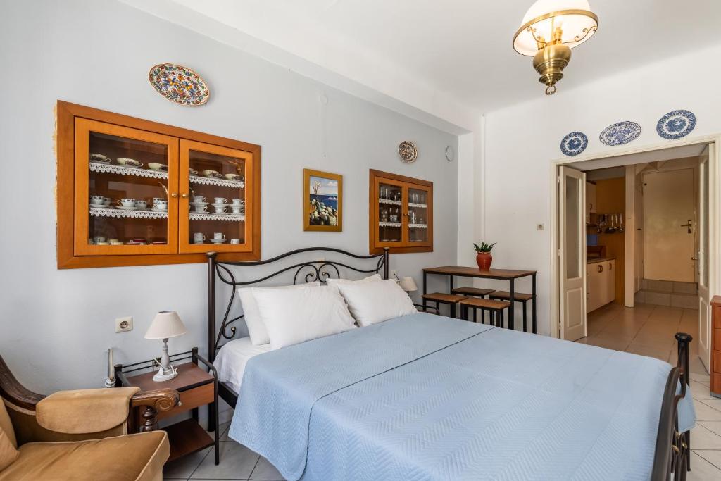 Yiayia's guesthouse is situated 400 meters from Skopelos Port in Skopelos Town. For visitors wishing to take in the splendor of Skopelos Town, this holiday home is a fantastic option due to its warm atmosphere and first-rate services. Comfortable rooms with features including air conditioning, a refrigerator, and a flat-screen TV are available at Yiayia's. Some apartments even feature balconies or terraces with breathtaking views of the mountains or the sea. To keep visitors connected, free WiFi is offered in all areas. The closest airport for those arriving by plane is Skiathos Airport, which is 38 kilometers away. Staying at Yiayia's guesthouse will allow you to see the best of Skopelos Town. To take advantage of the stunning surroundings, first-rate amenities, and flawless service, book your stay now!