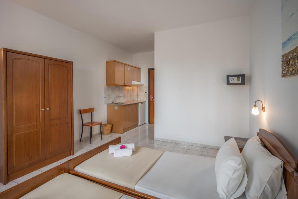 You may enjoy swimming and sunbathing at Astir Studios in Stalis (Stalida), which is only 200 meters from the beach. You can explore the hidden gems of the stunning island of Crete or just unwind by the waves. In addition to breathtaking beaches, the region has intriguing treks and unexplored landscapes. The studios of Astir offer air conditioning, a kitchenette, a seating area, and a satellite flat-screen TV. They also have a balcony with views of the sea and mountains. The accommodations come with free WiFi and a private bathroom with a shower and a hair dryer. Each room at the guesthouse comes with towels and bed linens. Breakfast is served every morning to start the day, and there is a barbeque facility to make your own meals. Heraklion International Airport is 25 km from the property. Discover the enchantment of Cretan hospitality by booking a room at Astir Studios.