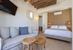 Enjoy your stay at Life Suites in Tourlos, an unmatched haven of comfort that invites you to a vacation in Mykonos that you will remember forever. Each suite has been constructed to preserve the natural environment, providing a modern haven where visitors can unwind and enjoy the unique atmosphere of the island. Every suite has a large double bed that guarantees the highest quality sleep in a calm setting, and the comfortable living area has an additional couch bed. Air conditioning, a desk, a coffee maker, a minibar, a safety deposit box, a flat-screen TV, a terrace, and a private bathroom with a bidet are all amenities offered to visitors in Life Suites. There is a patio or balcony with views and a swimming pool for your relaxing moments. The property is just 400m from Tourlos beach and a mere 10m distance from the nearest bus stop to explore the stunning island of Mykonos. While enjoying the peace and quiet of Life Suites, you can still easily visit local souvenir shops, restaurants, bars, and supermarkets. Take advantage of an excellent accommodation choice that will keep you away from the crowd while still providing easy access to Mykonos Town's lively personality and all of the island's main attractions.