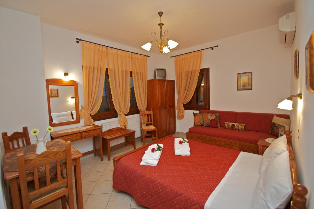The stone-built Guesthouse Papagiannopoulou is located in the center of the beautiful village of Zagora with breathtaking views of the Aegean Sea and the Pelion Mountain. The residences at Papagiannopoulou have a kitchenette with a dining space and classic furnishings with soothing tones and oak furniture. In addition, they have a refrigerator, TV, air conditioning, and a private bathroom with a hair dryer and a bathtub or shower. The establishment's eating area serves coffee and other hot beverages all day long, along with breakfast every day by the fireplace. Free parking is available for your vehicle. There are a number of traditional taverns and cafes within a short distance of the accommodation in Zagora. The sandy beach of Chorefto is 8 km away, while the Pelion ski resort is 20 kilometers away. The beach town of Agios Ioannis is 20 km away from the property.