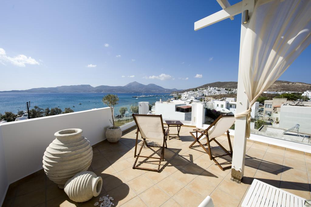 Situated on the coastline of Adamas, Mylos Island, the Ostria Hotel offers stunning views of the town center and harbor. Situated in one of the most romantic landscapes in Greece, Hotel Ostria offers a unique blend of stunning views and a variety of accommodation options suitable for singles and families. The air-conditioned rooms of the Ostria Hotel have iron beds, cozy décor, and a flat-screen TV and refrigerator. Free toiletries, a bathrobe, and a hairdryer are provided in the bathroom. Have your breakfast in the hotel lobby or on the roof garden, relax by the jacuzzi area, and have a cocktail on the magnificent roof garden, staring at the blue of the Aegean Sea and the surrounding area of this magnificent island.