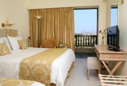 The three freshwater pools, private beach, and two restaurants of Aquila Porto Rethymno are situated on the sandy beach of Rethymnon, just a short stroll from the Old Town. Yoga sessions and massages are among the recreational and sporting options available at the hotel complex. The earthy colors and floor to ceiling windows of Aquila's rooms offer a balcony with views of the village or the Cretan Sea. Standard rooms are equipped with satellite TV & integrated music channel, direct dial telephone, bathrobe & slippers, beach towels, pillow selection, hairdryer, light Mini Bar (at an extra charge), a safe, and manually operated air conditioning. Bungalow suites are equipped with satellite TV & integrated music channel, Mini Hi-Fi, DVD player, tea/coffee making facilities, direct dial telephone, safe, Mini bar (at extra charge) and manually controlled air conditioning.