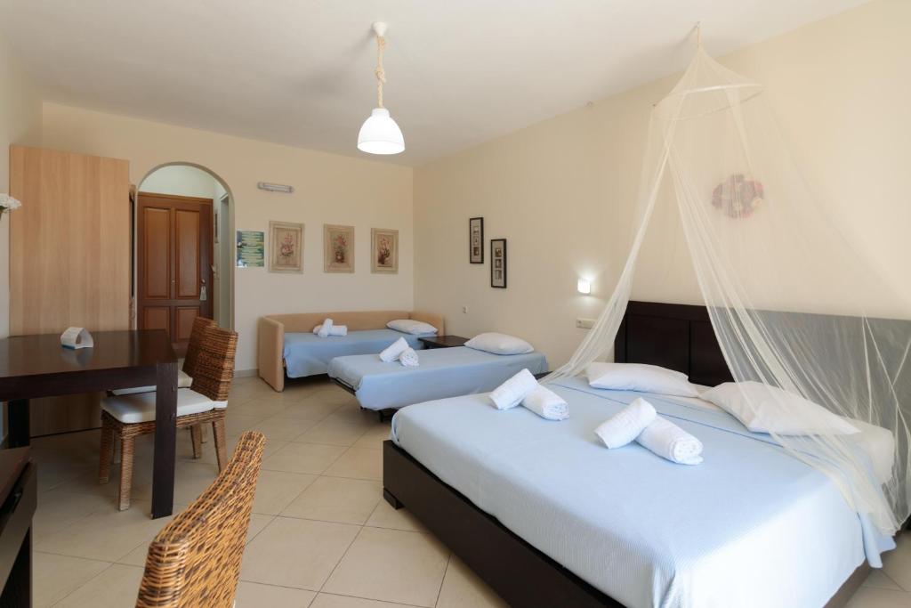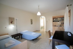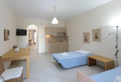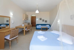 In Naxos, the Cycladic-style Margaritari Hotel is located 500 meters from Agia Anna's sandy beach. There is a furnished balcony with views of the Aegean Sea and self-catered accommodations available. The large studios and apartments at Margaritari include contemporary furniture and a kitchenette with a refrigerator and eating space. Every unit has a satellite TV and air conditioning.