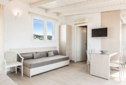 Situated in the serene town of Agia Marina, on the long, sandy, and sun-kissed beach, the Vergina Beach Hotel is about 9 km from the center of Chania. This 4-story building on the seafront houses a total of 18 accommodation units. The attractively furnished flats, suites, and apartments in Vergina include a private balcony and are simplistic in design. They have a flat-screen TV and a kitchenette with a tiny fridge and electric kettle. Enjoy the swimming pool by the beach and a plunge-spa pool with waterfall.