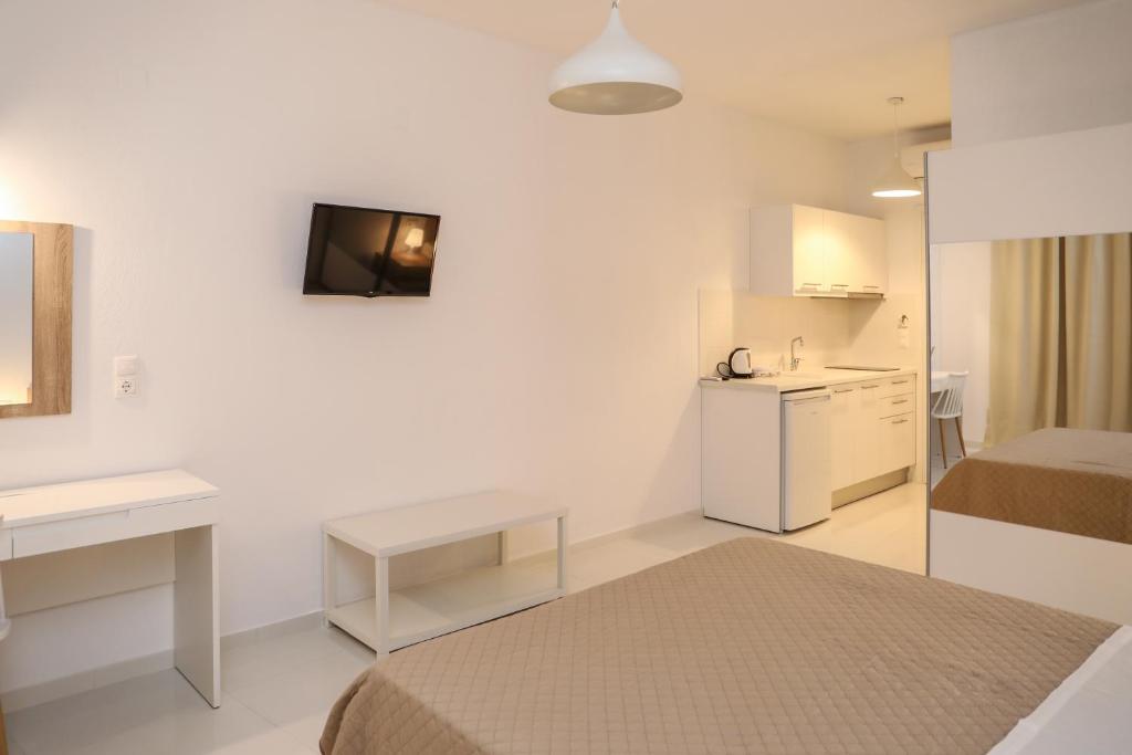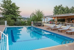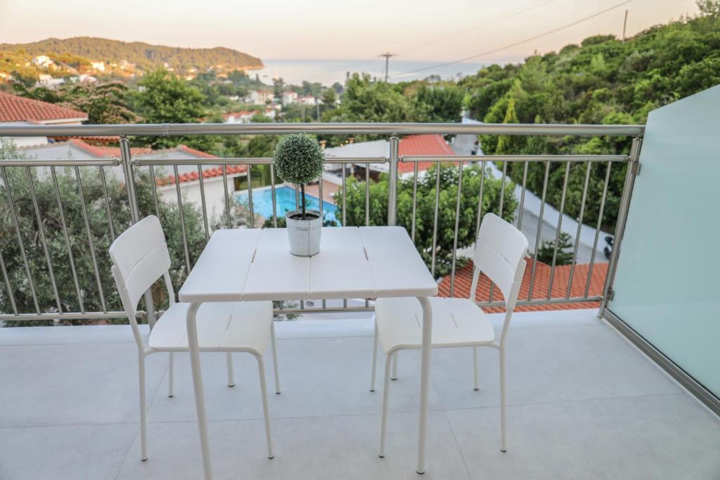 Zorbas Family House offers a picturesque view of the sea and is situated in Skiathos' verdant Agia Paraskevi area. Easily accessible on foot, Agia Paraskevi beach is 400 m from this Skiathos hotel, and the main town is 7 km distant. Apartments with two bedrooms, three bedrooms, and double bedrooms are available at Zorbas Family House. Every one of the rooms has a kitchen, refrigerator, television, free wifi, LED lighting, a bathroom, a balcony with a view of the sea, and a safety deposit box. We just renovated all of our rooms with energy-efficient Class A appliances. Settle in for a nutritious Greek breakfast by the pool. On a nightly basis, there are occasionally BBQ nights where you may sample some authentic traditional Greek cuisine. Kolios Beach is less than 1 km from the property, and Skiathos Airport is 9 km away.