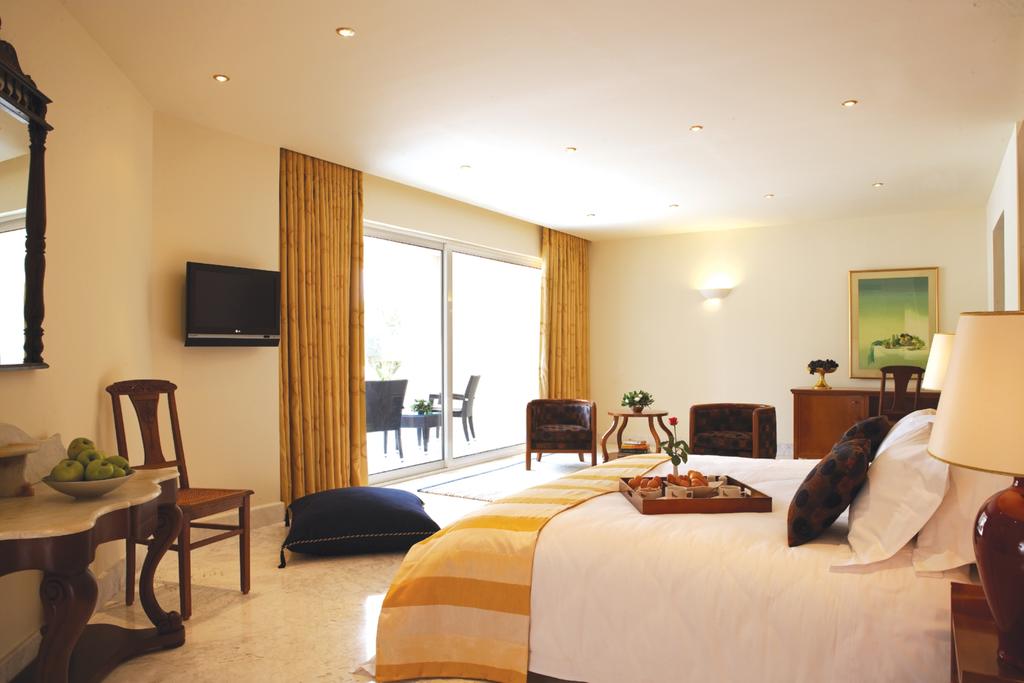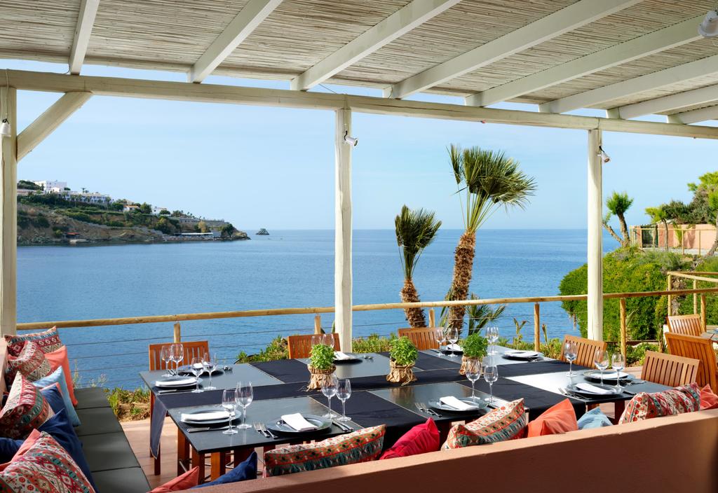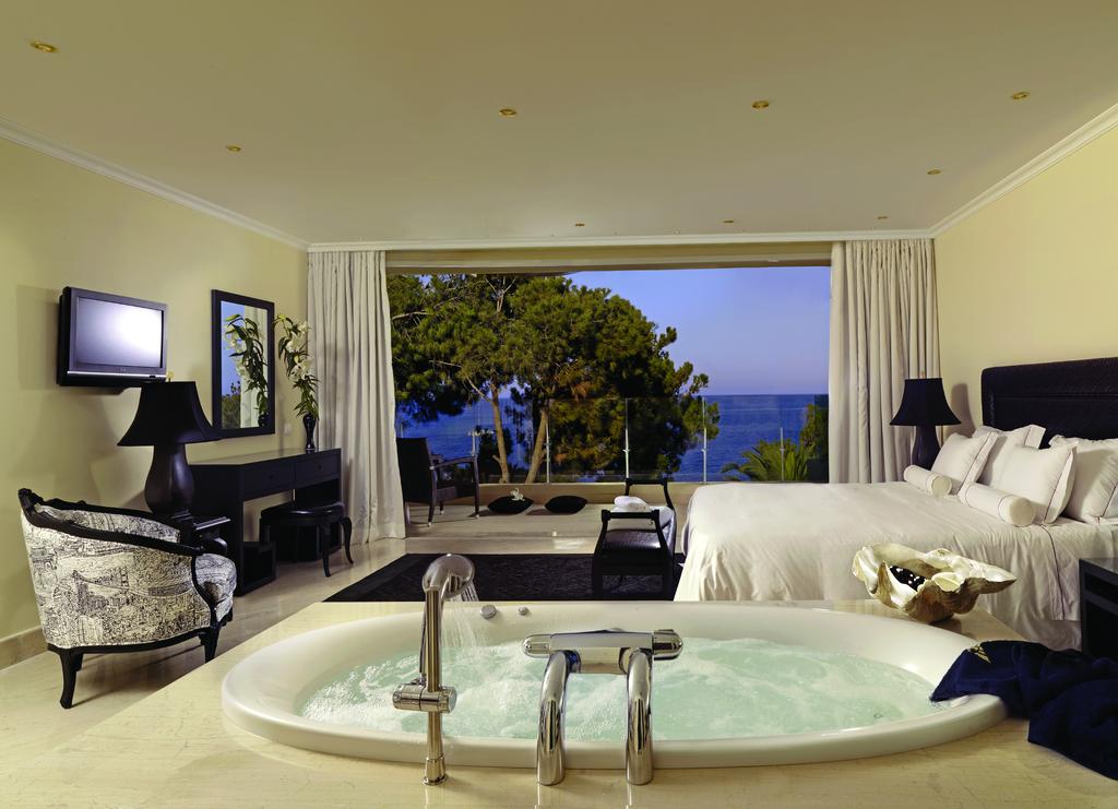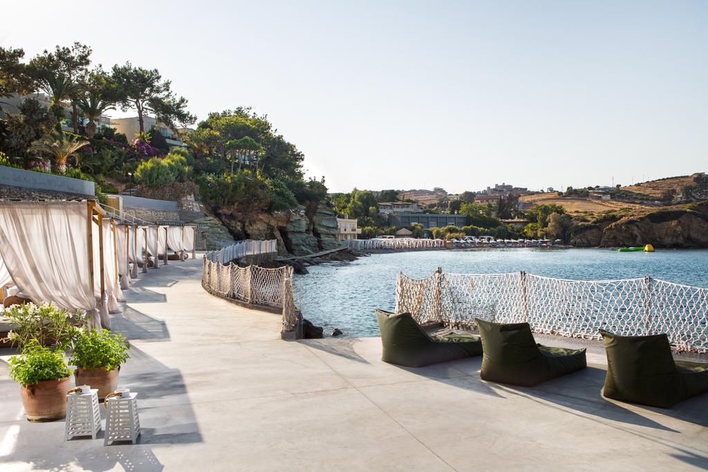 The lodging at Out Of The Blue Resort & Spa is encircled by vast gardens and two beaches, giving it the appearance of a Cretan village. Each apartment features a balcony overlooking the garden or the sea, air conditioning, a phone with voicemail, and a satellite plasma TV. Out Of The Blue Resort & Spa offers a variety of restaurants from French gourmet to Italian, from traditional Greek and Cretan cuisine. On the hotel's property, visitors may take advantage of special hydrotherapies or private massages. There are also sauna and hamam amenities at the Euphoria Spa.