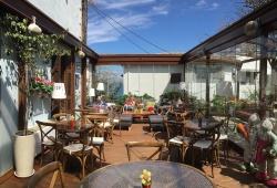 Kentrikon Boutique Hotel can be found in the heart of the village of Agios Ioannis in Pelion. It is constructed in the form of an amphitheater on five levels, with 20–100 stairs separating each tier. Situated in a serene area of the town, it is only 30 meters from the Agios Ioannis beach, 500 meters from the seldom frequented yet gorgeous Plaka beach, and 800 meters from the well-known Papa Nero beach. Both the lowest and top hotel categories provide automobile access to the property. The atrium, a recent addition to this accommodation, provides distinctive views of the blue Greek sky and hotel grounds, which are surrounded by a flower garden. It also looks out over the Aegean Sea.