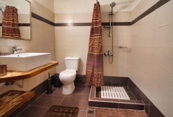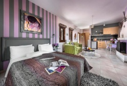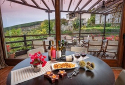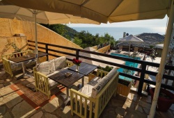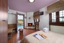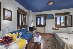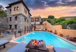One of the best hotels in Pelion, the Petradi hotel, is located in the coastal settlement of Kalamaki. Choose the one that best suits your needs. Pelion is the mountain of legends and history, a place of unparalleled beauty where the forest green blends with the emerald blue of the sea, offering unique views. Petradi rooms offer a beautiful bathroom with toiletries, a fireplace, and bright décor. A flat-screen TV with cable channels is one of the amenities in the room. You can unwind with a cocktail in the cozy reclining seats and swim in the pool. The sandy beach is conveniently located 2 kilometers away for people who wish to discover. During your stay at the Petradi hotel, you can plan your own program or choose from a variety of specially designed pathways and courses to explore Pelion, such as canyoning at "Mylopotamo," trekking at "Halorema," or mountain biking at the lake barrage "Panagiotiko."