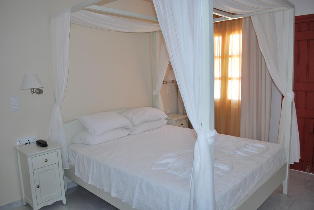The 8,000 square meter Lianos Village was built with a view of the bay of Agios Prokopios in Naxos. It's a typical village consisting of eight distinct, tiny, and attractive Cycladic-style buildings designed to provide you the comfort and seclusion you want when on holiday. Thanks to the hotel's amphitheater architecture, you may enjoy the breathtaking view of the beautiful gardens and vineyards together with Agios Prokopios beach. The rooms at Lianos Village are lovely and roomy, with a separate balcony where guests can unwind and take in the scenery. The premium double bed rooms and superior double and triple bed rooms provide views of the garden or the sea.