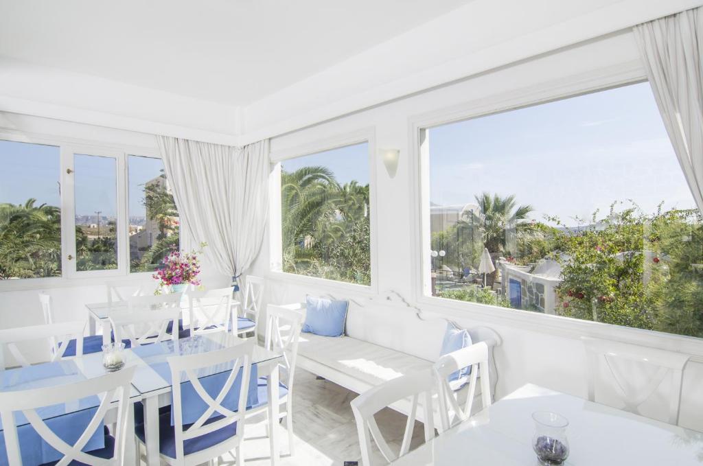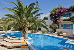 The Paradise Resort is situated in the heart of Akrotiri, a historic town on Santorini's southern coast. Akrotiri is the ideal village for tourists looking to unwind in a calm and welcoming setting. This Santorini hotel is comprised of six distinct structures encircling a garden and swimming pool. The hotel offers the amenities and services of contemporary hotels while also honouring the regional architectural style. Every room has a balcony with a view of the pool or the sea. Also included in the room a direct-dial phone, air-condition, heating, mini bar, satellite TV, free wireless Internet access, safe-box and hairdryer; bathrooms feature shower. The hotel staff of Paradise Resort can help you obtain all the information you want regarding Santorini, daily excursions to the Volcano and Thirassia island, sea kayaking excursions, and transportation to the island's outdoor theater. Enjoy the swimming pool for your fun, the bar for your refreshing drinks and there is a restaurant available to taste the best of Greek cuisine with Santorinian wine.