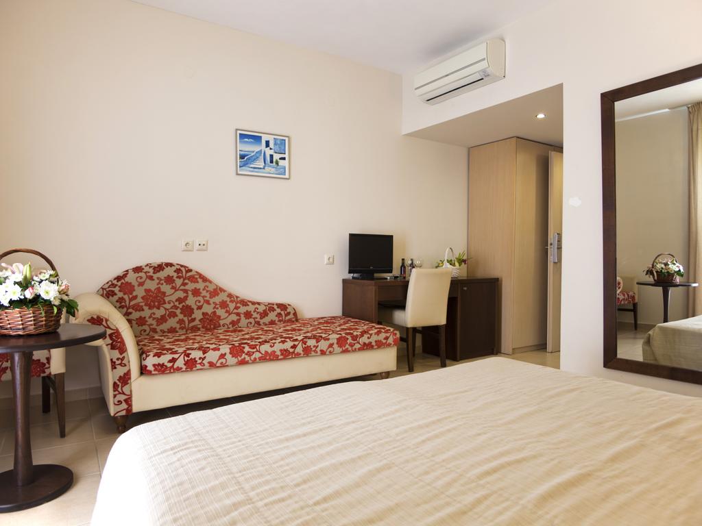 Light-colored, balcony- or terrace-facing the Cretan Sea or mountains, Marilena rooms come with air conditioning. Each has a small fridge and satellite TV, and there's a hair dryer in the separate bathroom. Sports and recreation amenities include a table-tennis table and billiards, while guests may unwind in the Marilena palm-tree garden and swimming pool, which has sun beds and umbrellas. The hotel hosts weekly themed music and dance events (Cretan, traditional Greek, and Latin) at the pool bar during the summer season. Yoga courses are available during the day if you want to unwind and revitalize your body and mind.