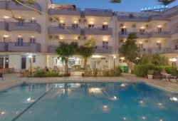 The Marirena Hotel is made up of rooms for 2–4 guests and studios for 2–3 guests. Room amenities include air condition, refrigerator, kettle, television and safe box. The rooms have been carefully designed and furnished to meet your vacation needs. The hotel restaurant Dionysus will serve you exquisite Cretan and Mediterranean specialties made with the best ingredients for both your midday and evening meals. At the snack bar beside the pool, you may lounge in the sun for hours while enjoying a wide selection of snacks, cool beverages, and cocktails.