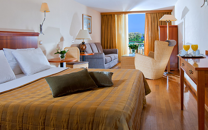With 208 rooms, bungalows and suites - that make up the three-story main building and 4 bungalow complexes - our hotel offers all the comforts necessary for an enjoyable accommodation and a memorable summer vacation, while our restaurant offers a huge variety of culinary delights, including Greek and Cretan cuisine and cooked-to-order daily specials.
