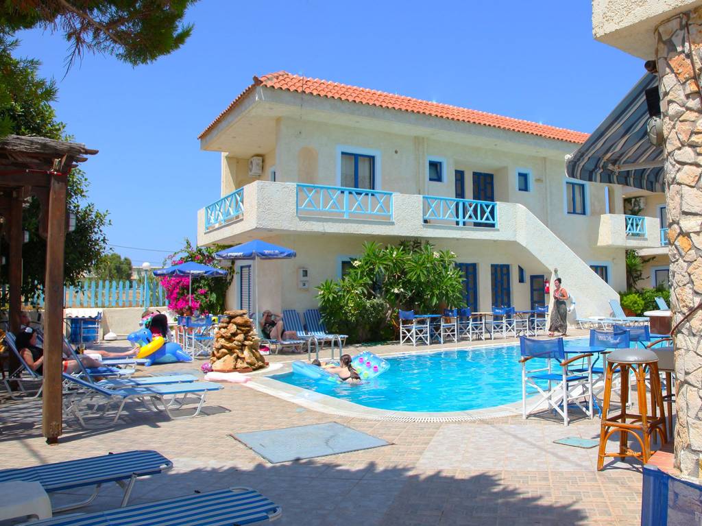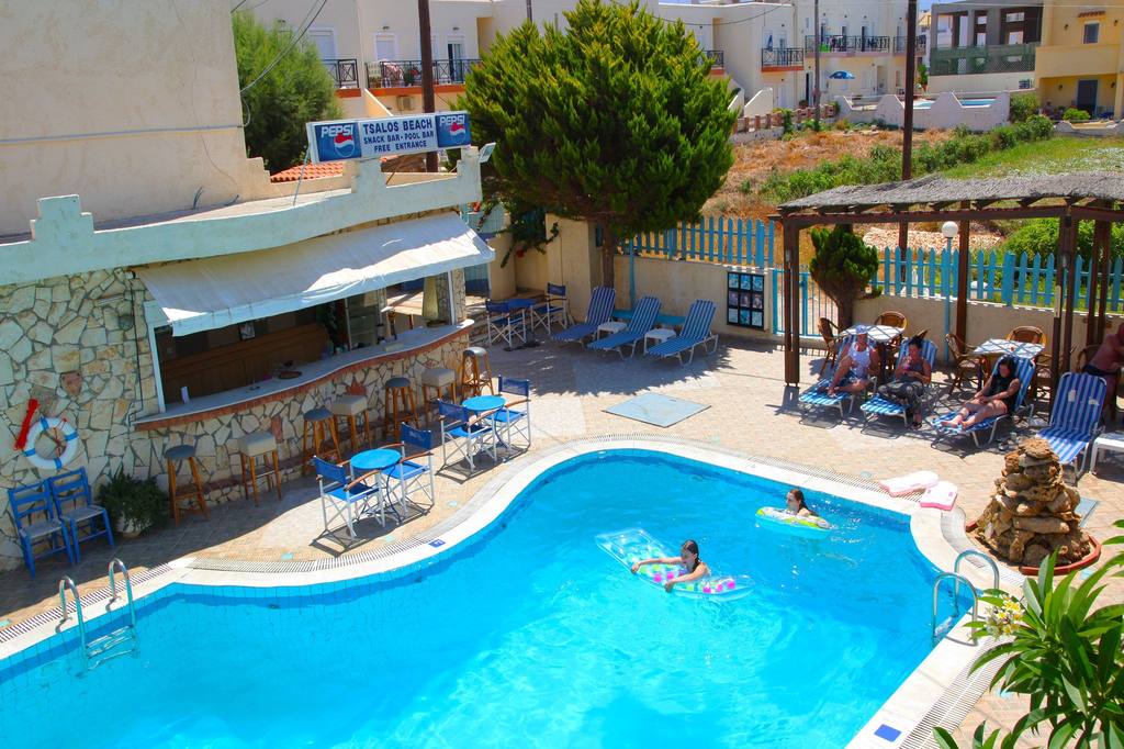 The amenities include an integrated tropical bar with scheduled events including Cretan folklore shows and traditional BBQs, a freshwater swimming pool with a separate children's pool, a cocktail pool bar, reception, and an original Greek tavern with a pizza oven. At the Tsalos Beach Hotel in Analipsi there is a supermarket, souvenir shops, restaurants and bars. The hotel is located around 5 km from Hersonissos, and Heraklion Airport is 26 km distant.