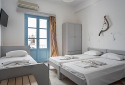 With views of the nearby island of Paros, the charming harbor of Antiparos is home to the Hotel Mantalena. The hotel is surrounded by six stunning beaches, all within a 5-to 10-minute walking distance. The beaches in Psaraliki that provide beach bars, beach volley, surf, and kayak rentals are the most well-known. Families with little children will love Kaloudia and Agios Spyridonas for their shallow waters, and last but not least, Sifneiko Beach is a great place to take in the breathtaking views of the open sea and stunning sunsets. The many bars restaurants in Hora or Antiparos Town provide great service and can assist you in learning about the local cuisine and exotic cocktails. You can locate gift shops by walking down the paved main street. You are invited to stay at Mantalena Hotel in Antiparos and discover the beauty of Greece.